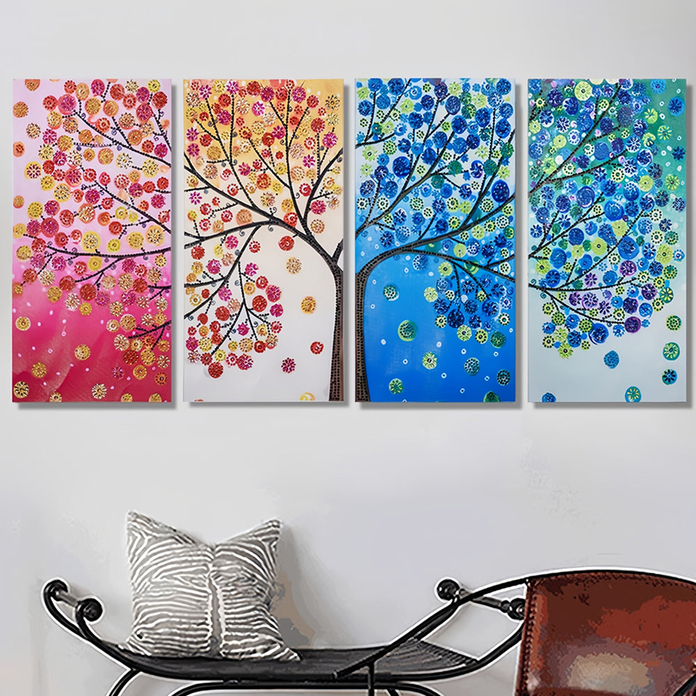 Bunter Vier Jahreszeiten Baum 4 Stück Sonderform Diamond Painting