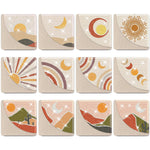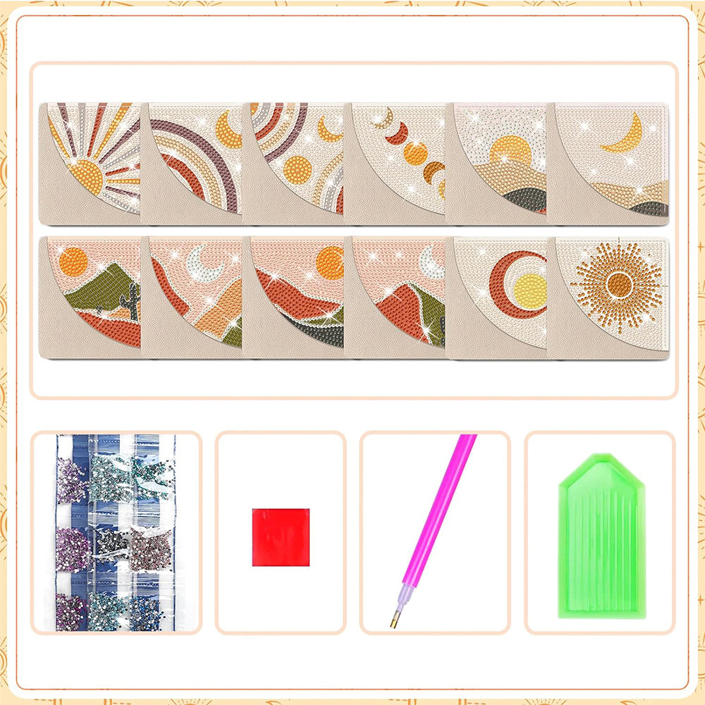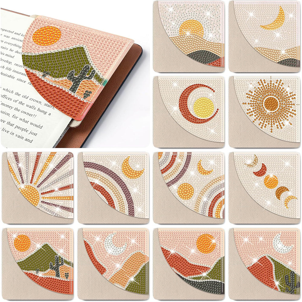 12St. Abstrakte Landschaft PU Ecke Abdeckung Lesezeichen Set Diamond Painting