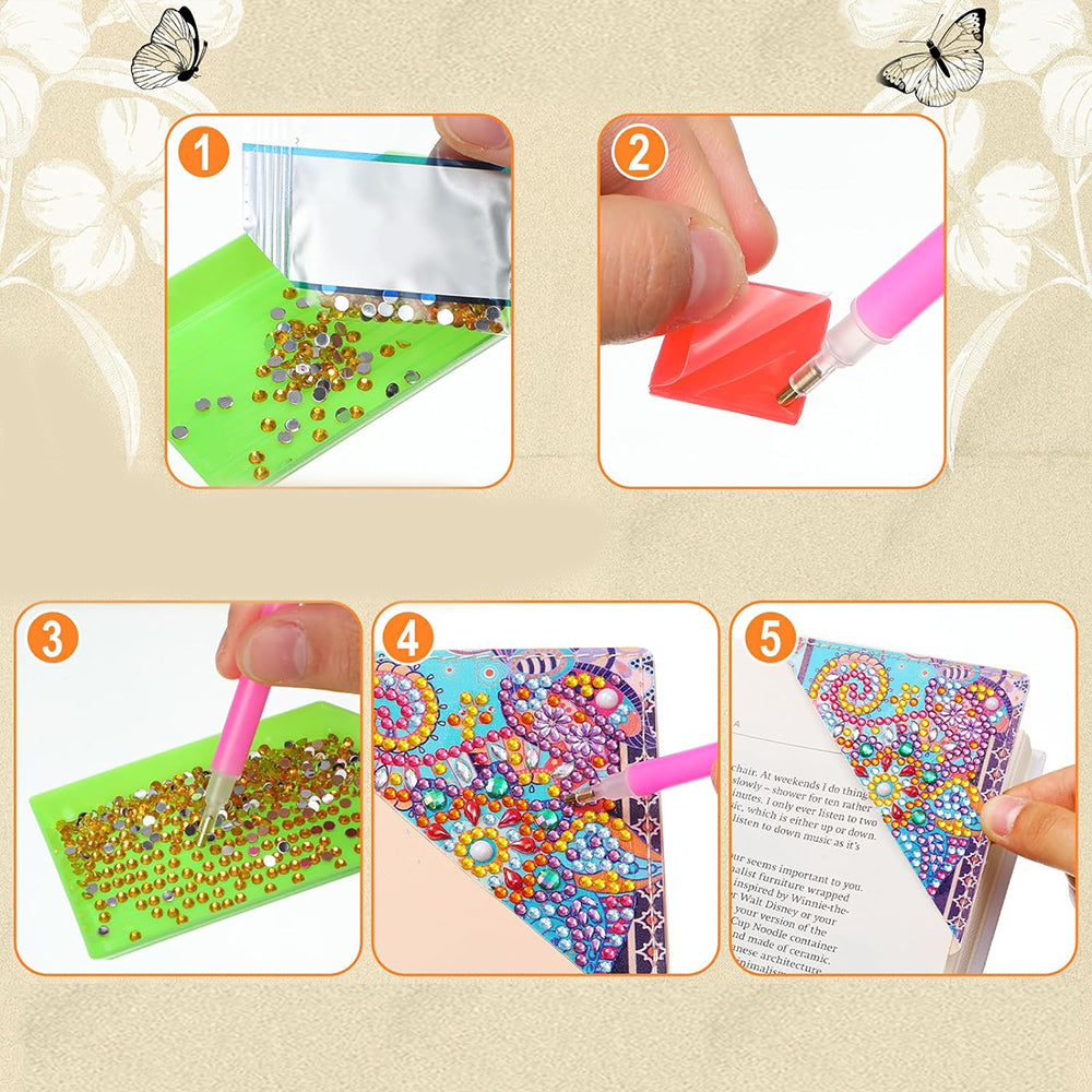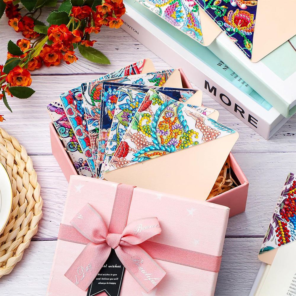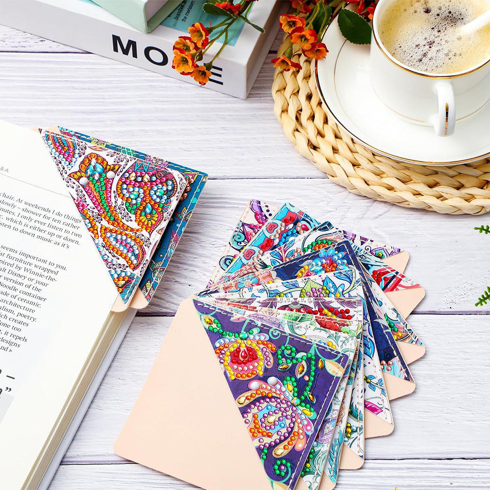 12St. Pflanze Mandala PU Ecke Abdeckung Lesezeichen Set Diamond Painting