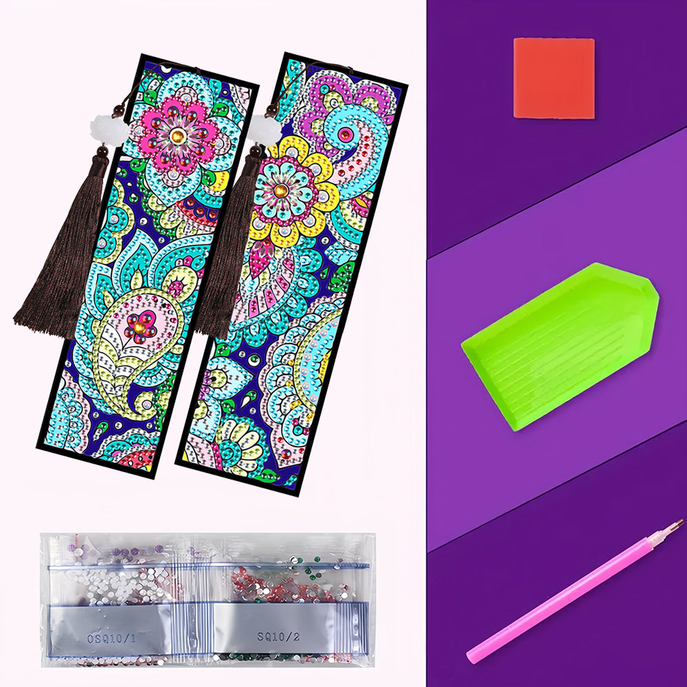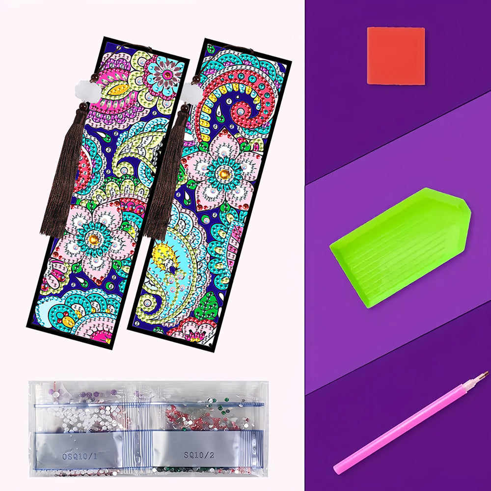2/4St. Abstrakte Blumen und Reben Leder Lesezeichen Set Diamond Painting