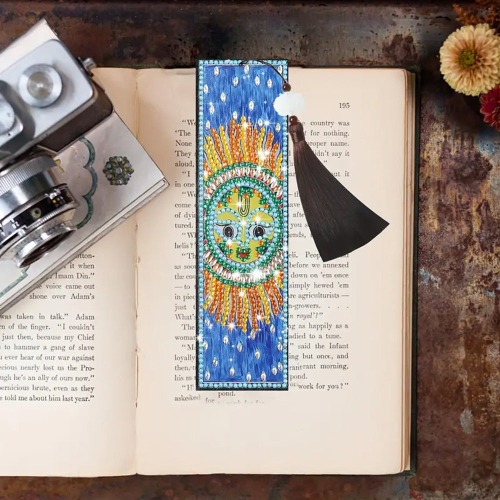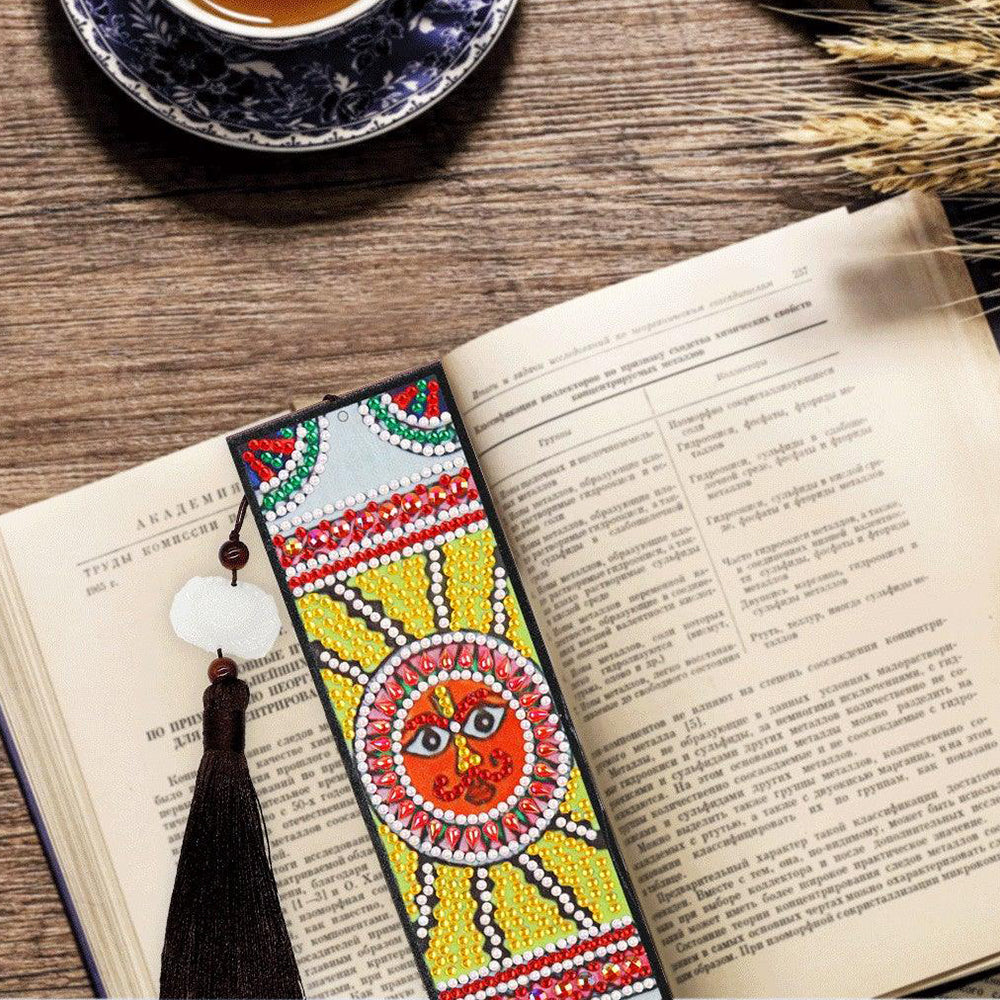 2St. Abstrakt Cartoon Sonne Leder Lesezeichen Set Diamond Painting
