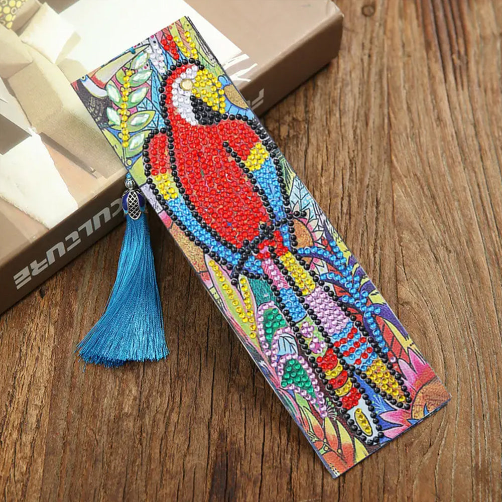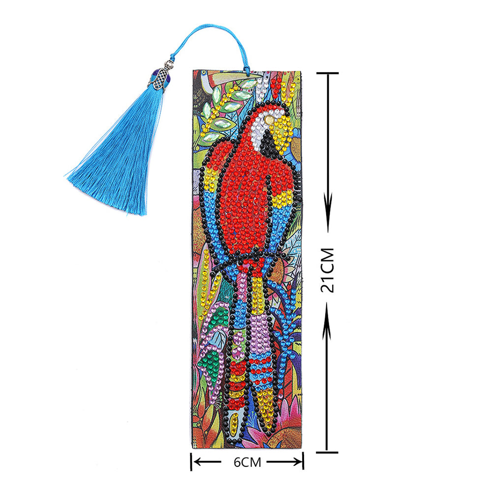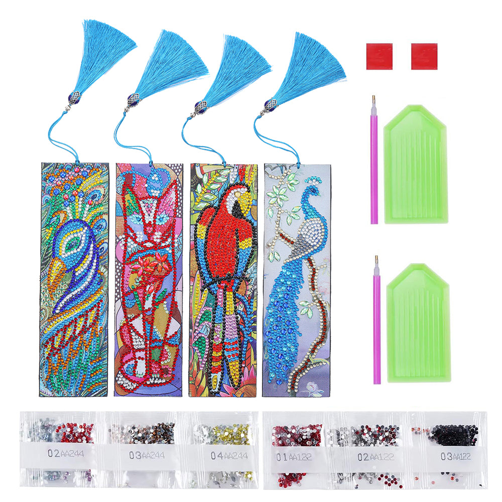 4St. Pfau, Papagei und Katze Leder Lesezeichen Set Diamond Painting