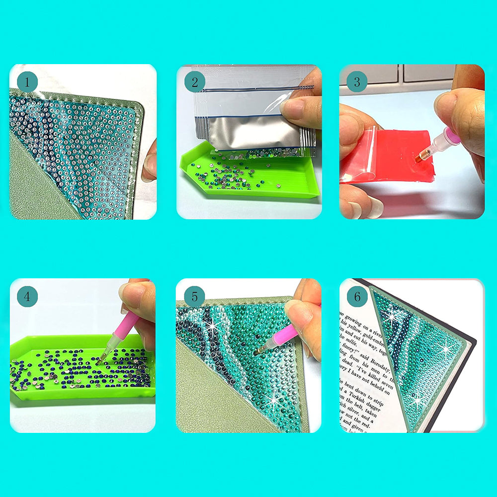 8St. Abstraktes Meer PU Ecke Abdeckung Lesezeichen Set Diamond Painting