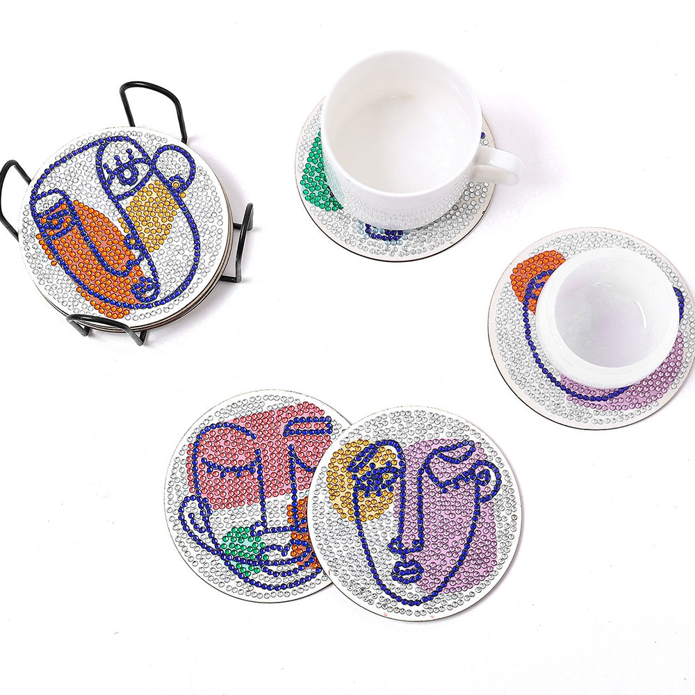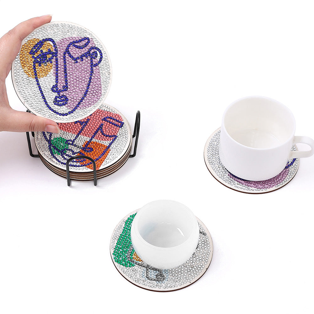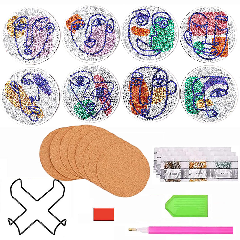 8Stück Abstraktes Gesicht der Frau Diamond Painting Untersetzer