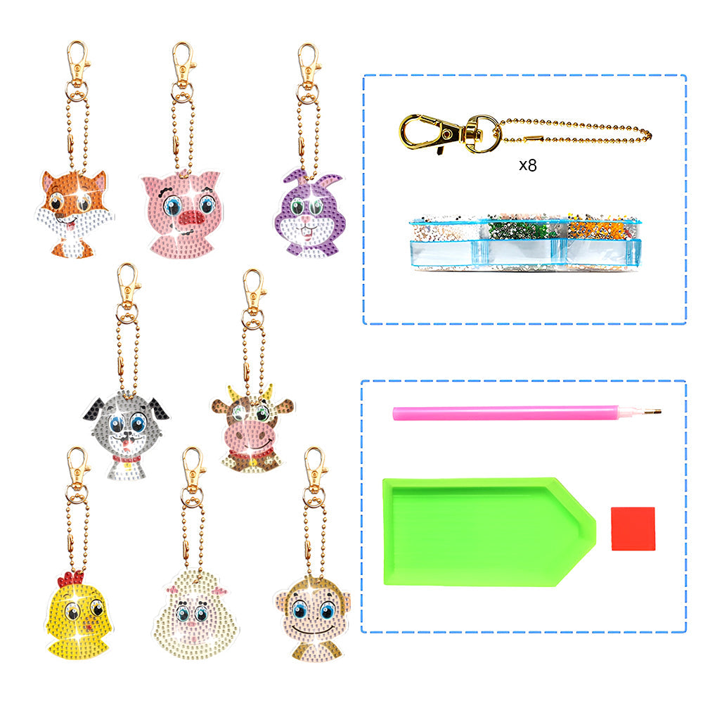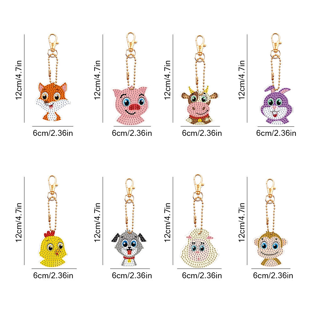 8Pcs Fröhliche Tiere Acryl Doppelseitiger Schlüsselanhänger Diamond Painting