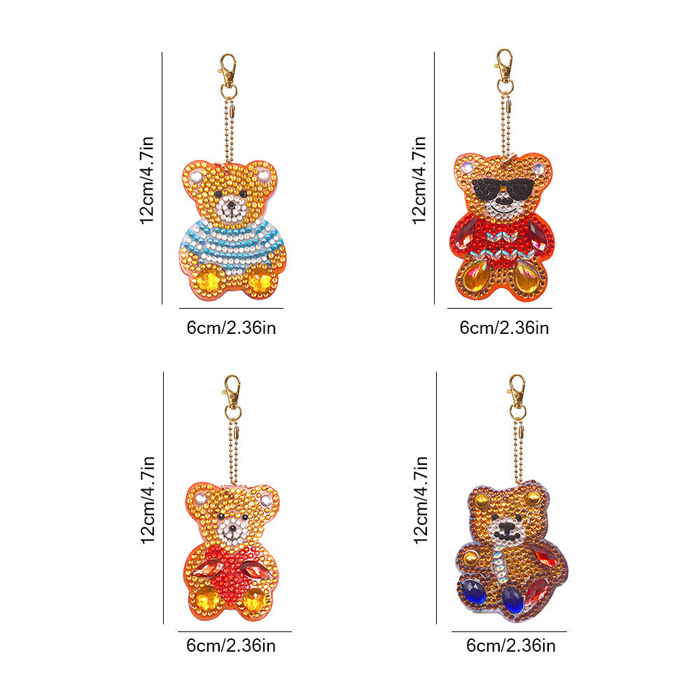 4Pcs Coole Bären Acryl Doppelseitiger Schlüsselanhänger Diamond Painting