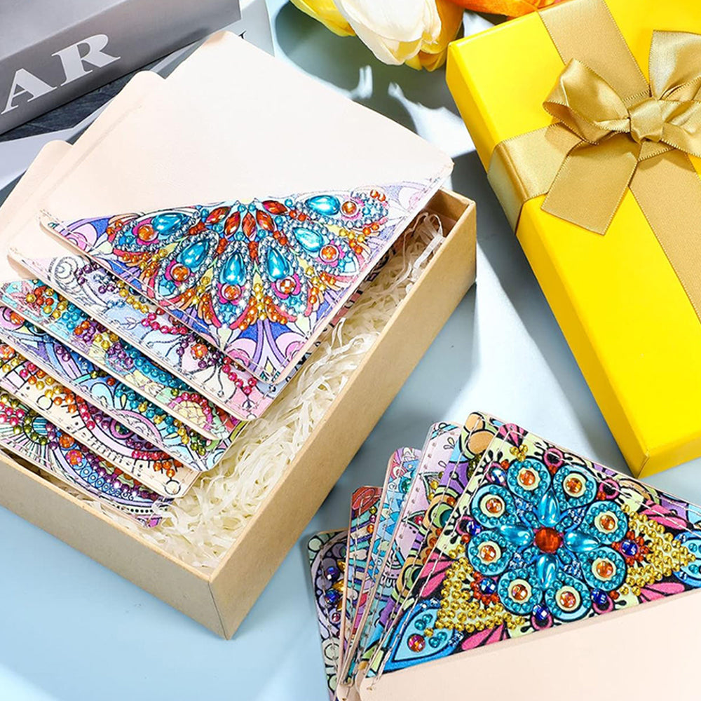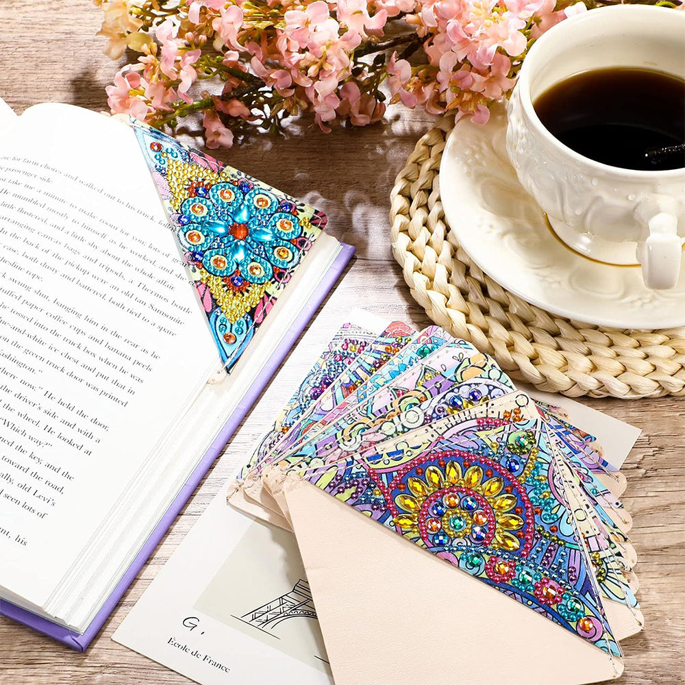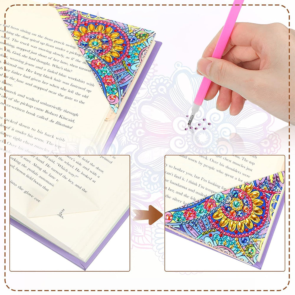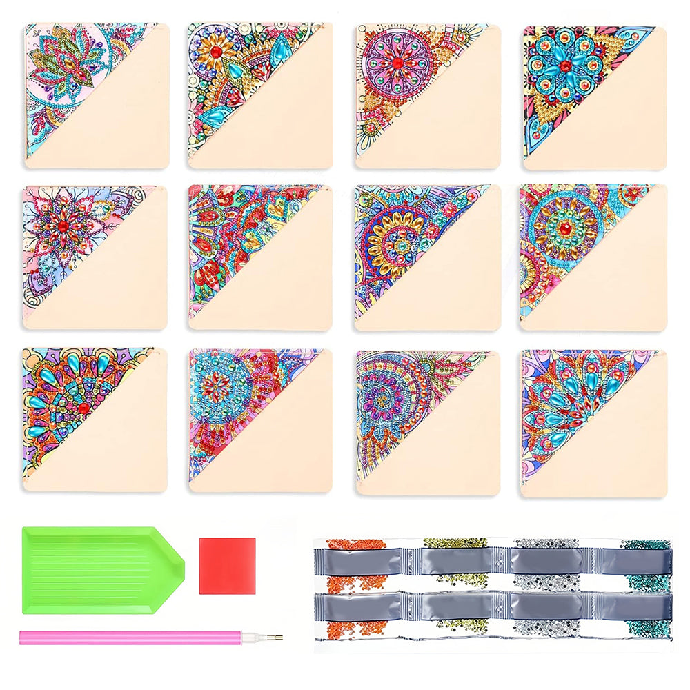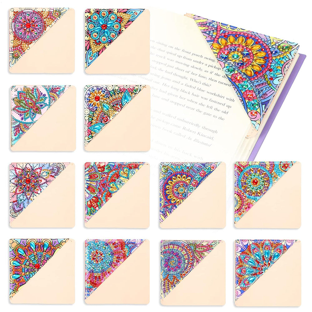 12St. Blume Mandala PU Ecke Abdeckung Lesezeichen Set Diamond Painting