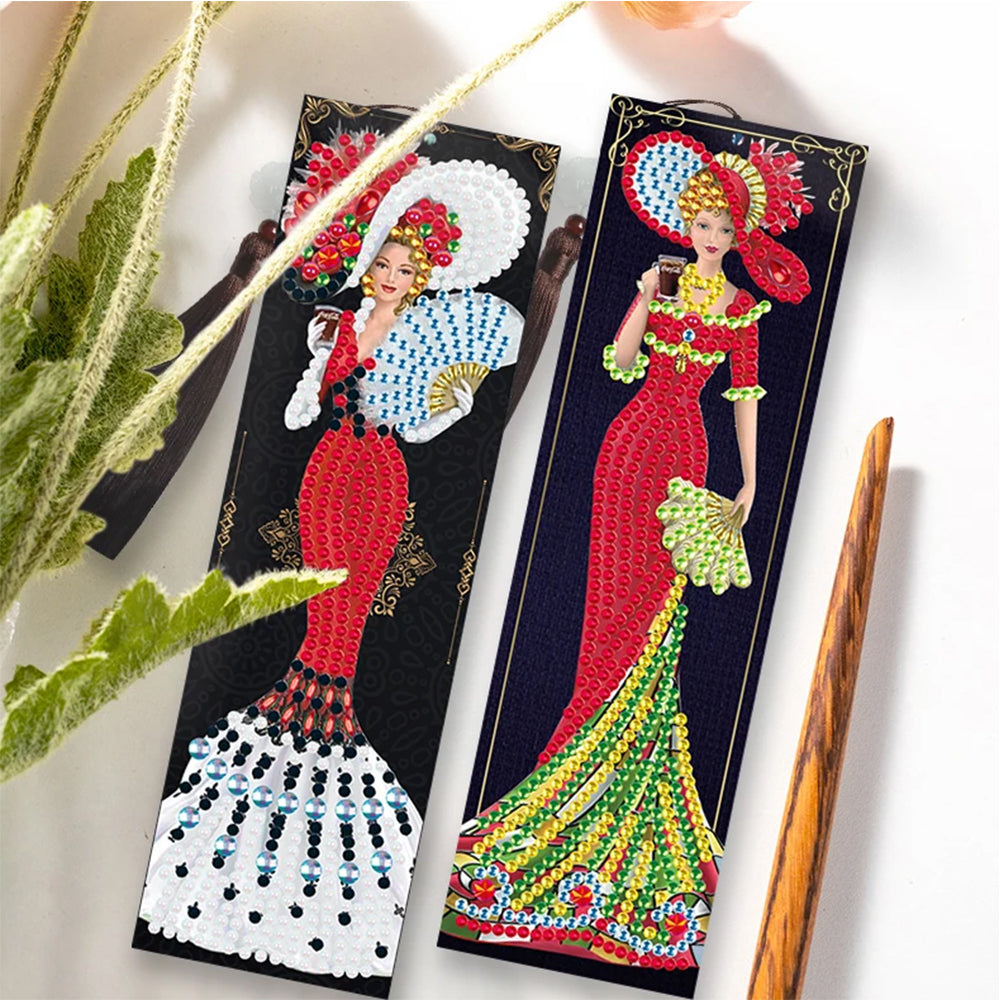 2/18St. Charmante Frauen Leder Lesezeichen Set Diamond Painting