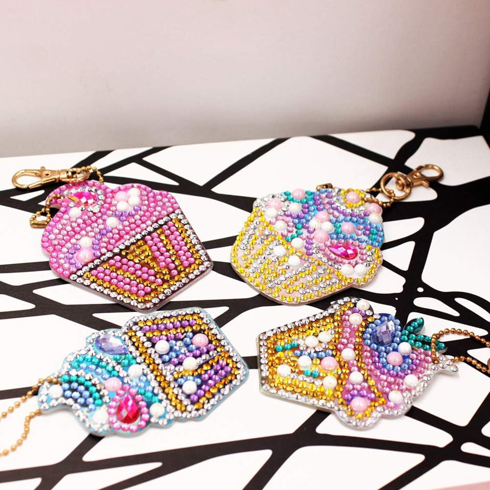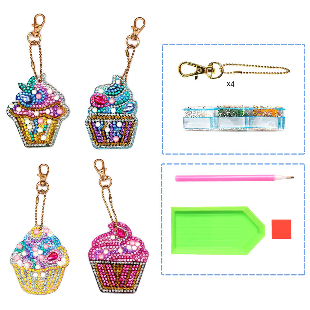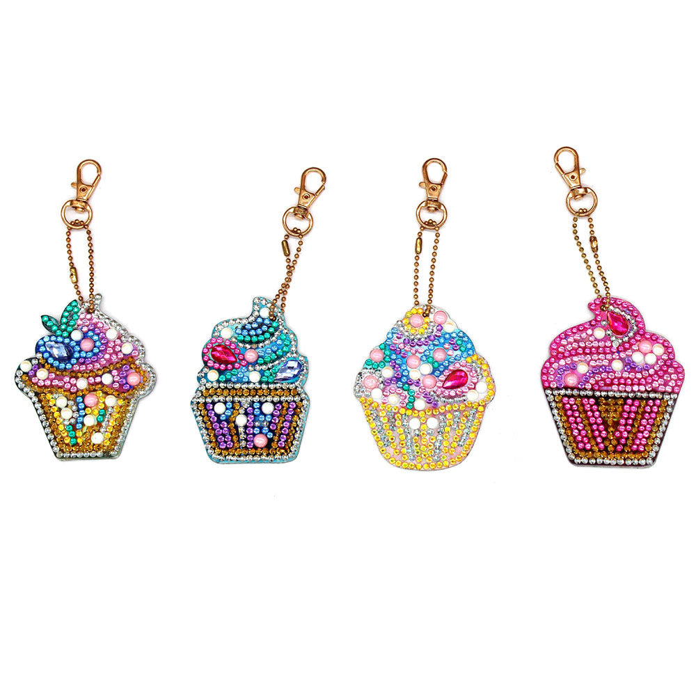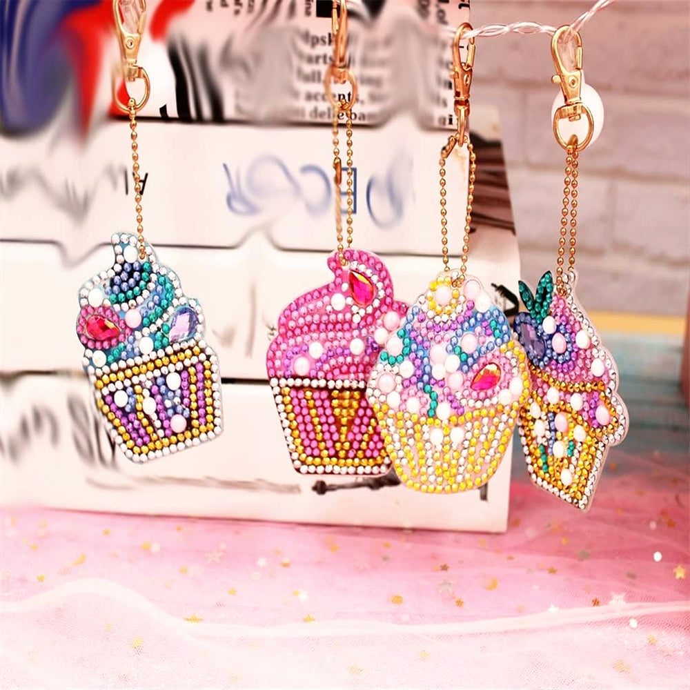 4Stück Leckere Eiscreme Acryl Doppelseitiger Schlüsselanhänger Diamond Painting