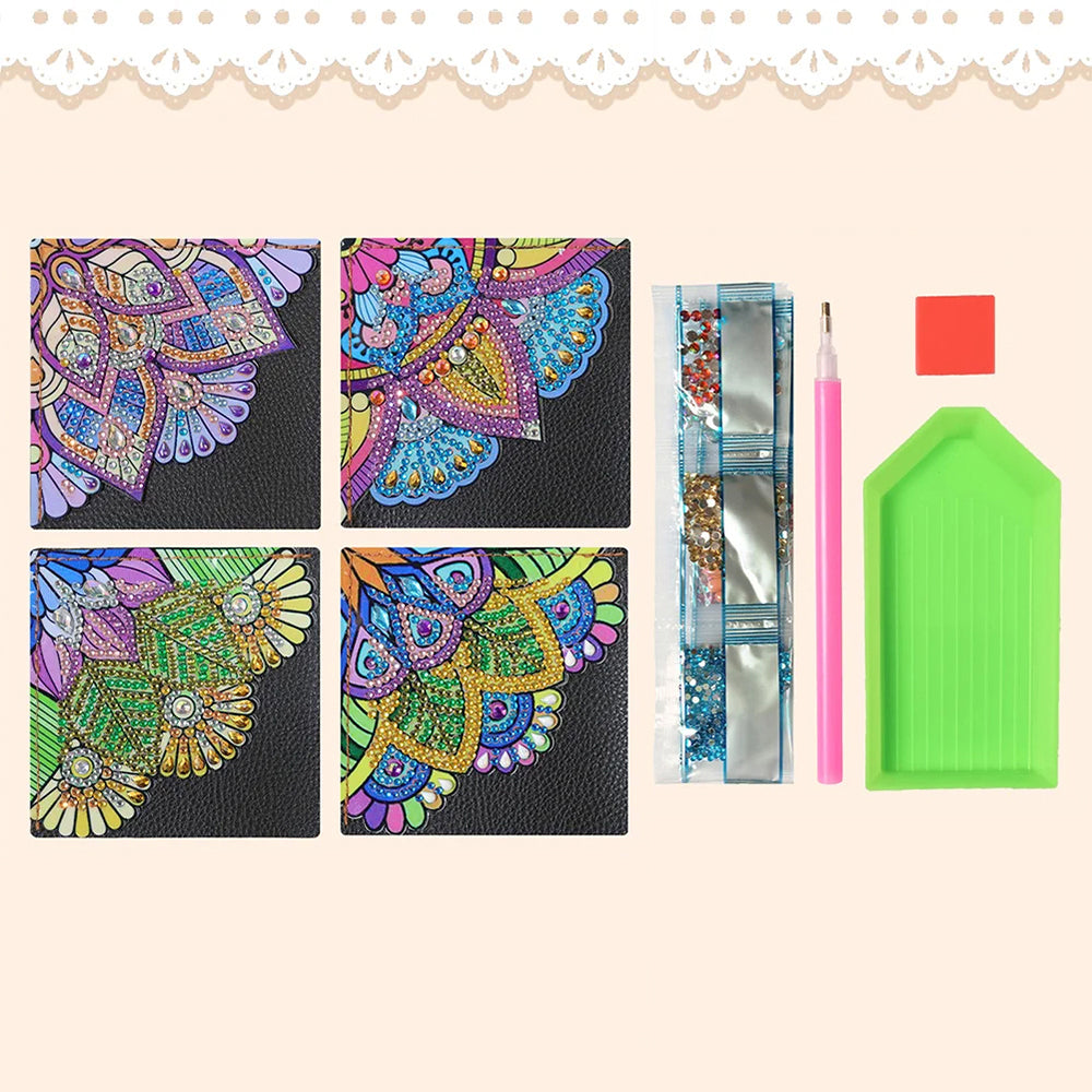 4St. Wunderschöne Mandala PU Ecke Abdeckung Lesezeichen Set Diamond Painting