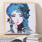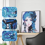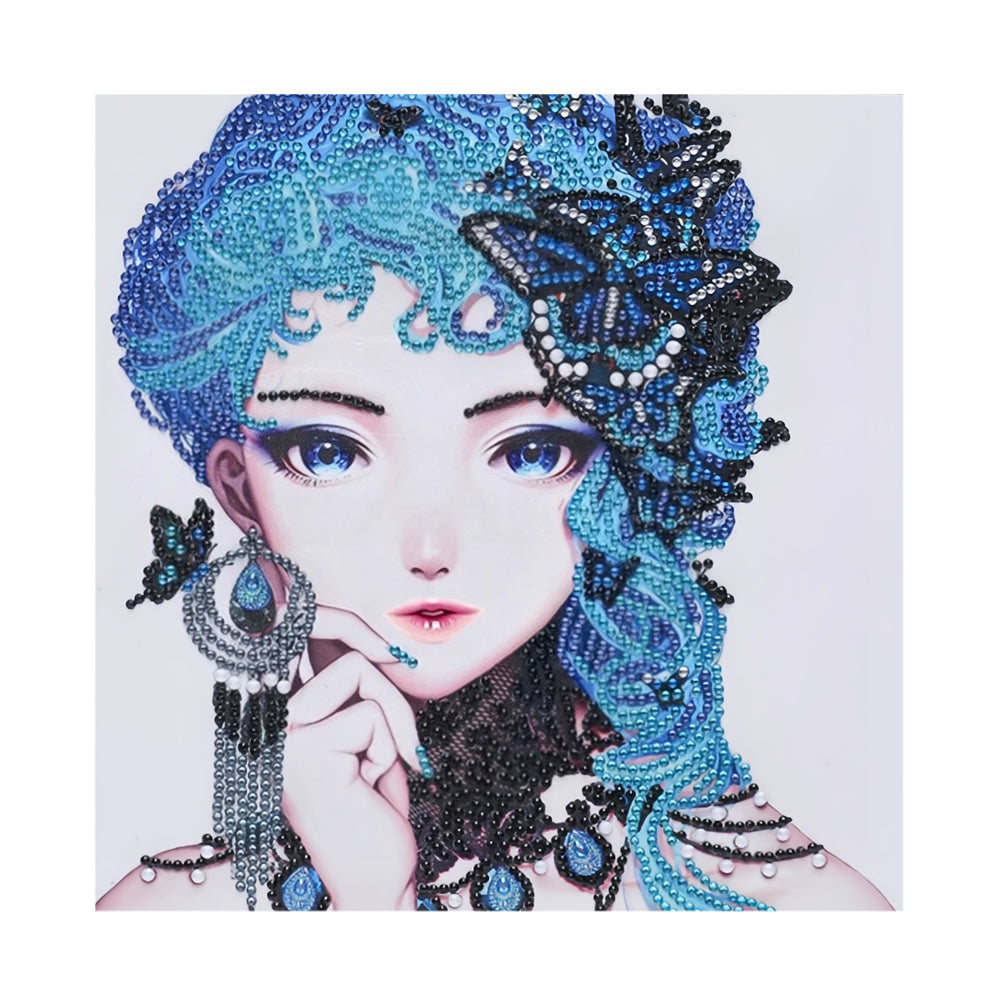 Elegante Blauhaarige Schmetterling Frau Sonderform Diamond Painting
