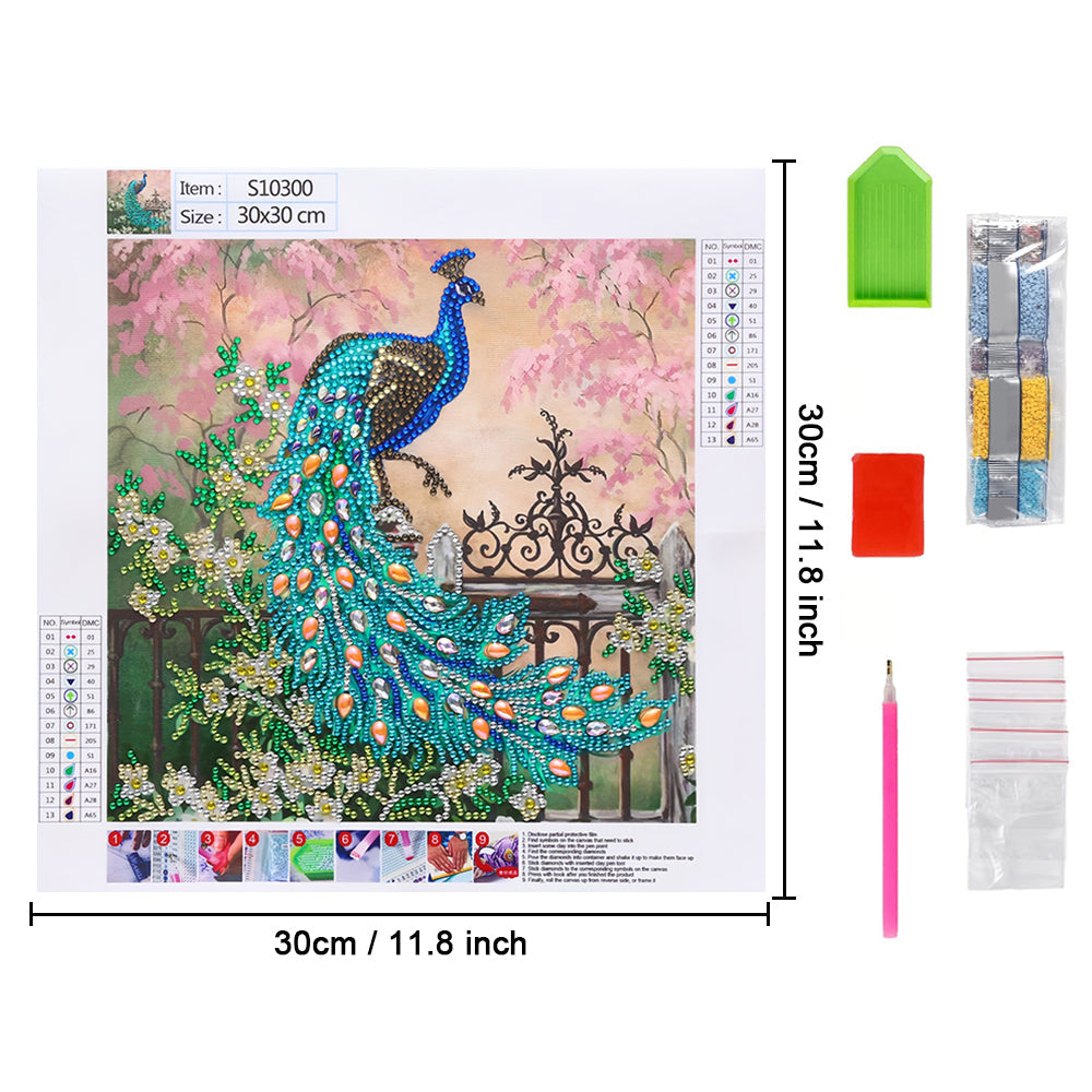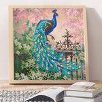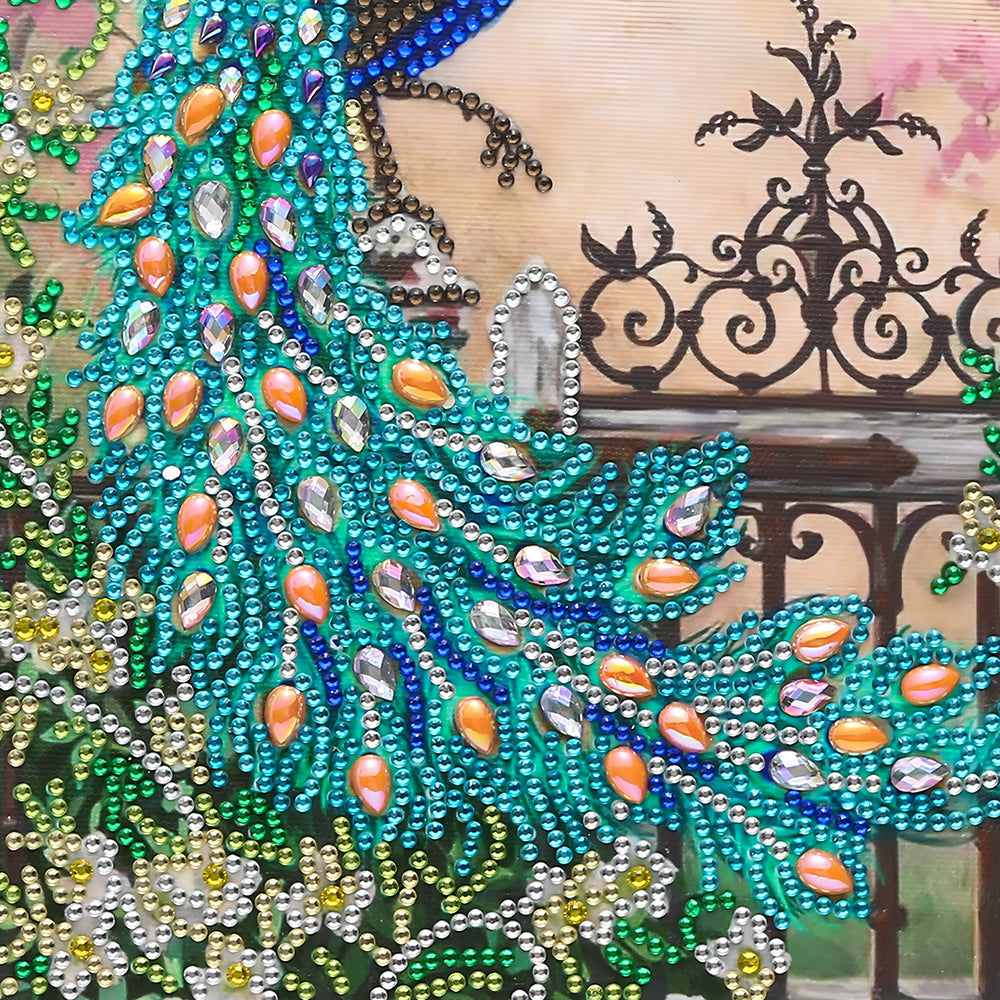Grüner Pfau auf dem Zaun Sonderform Diamond Painting