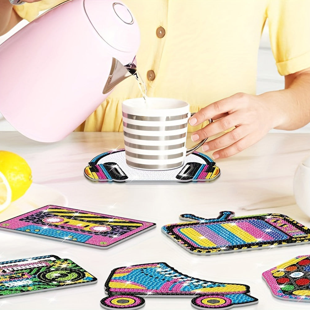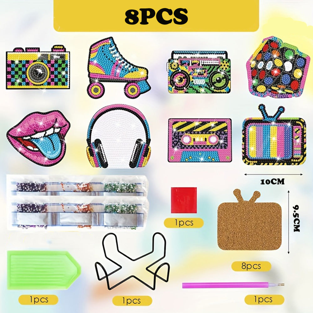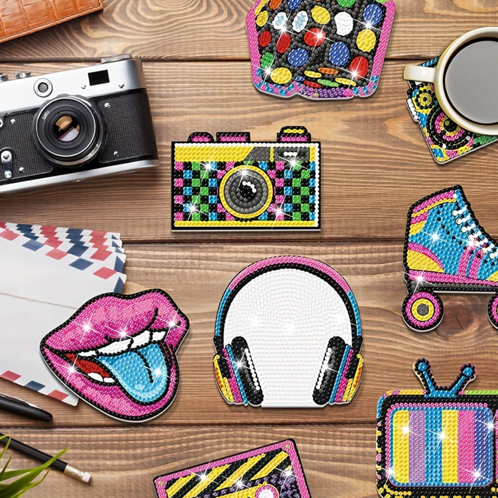 8Stück Musik Kopfhörer Pop Art Diamond Painting Untersetzer