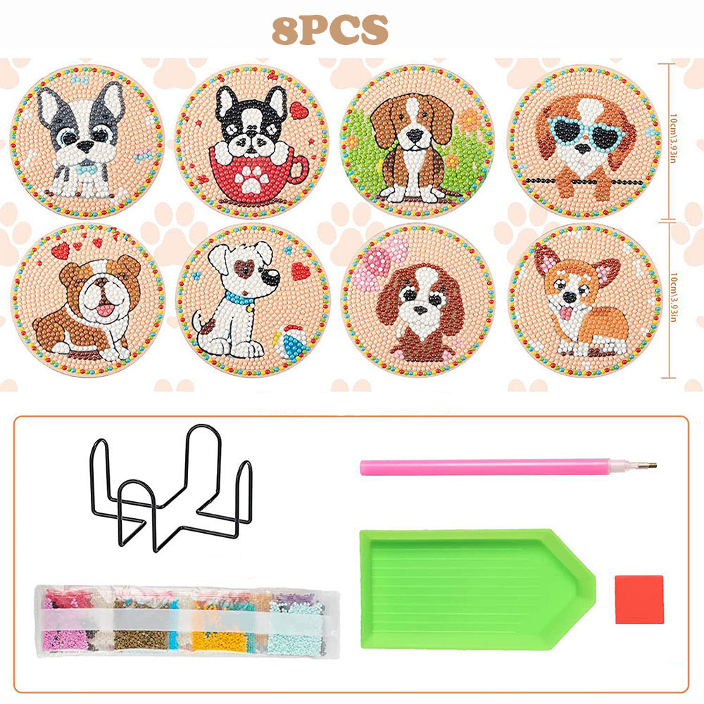 8Stück Niedlicher Welpe Diamond Painting Untersetzer