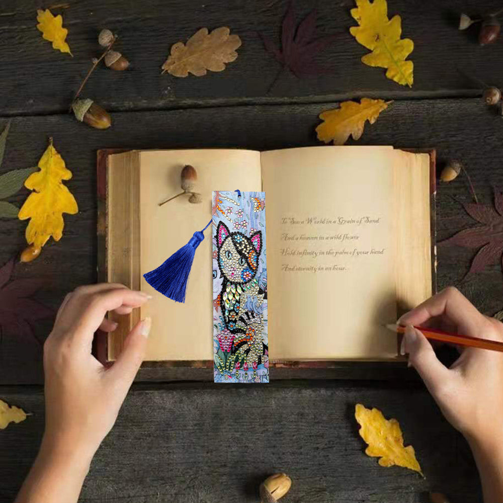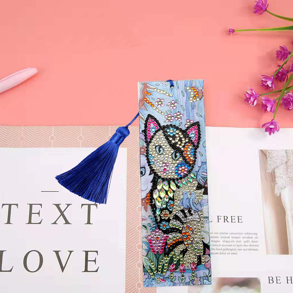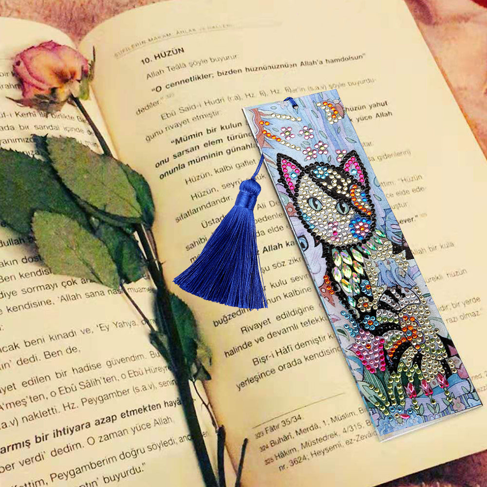Wunderschöne Katze Leder Lesezeichen Diamond Painting