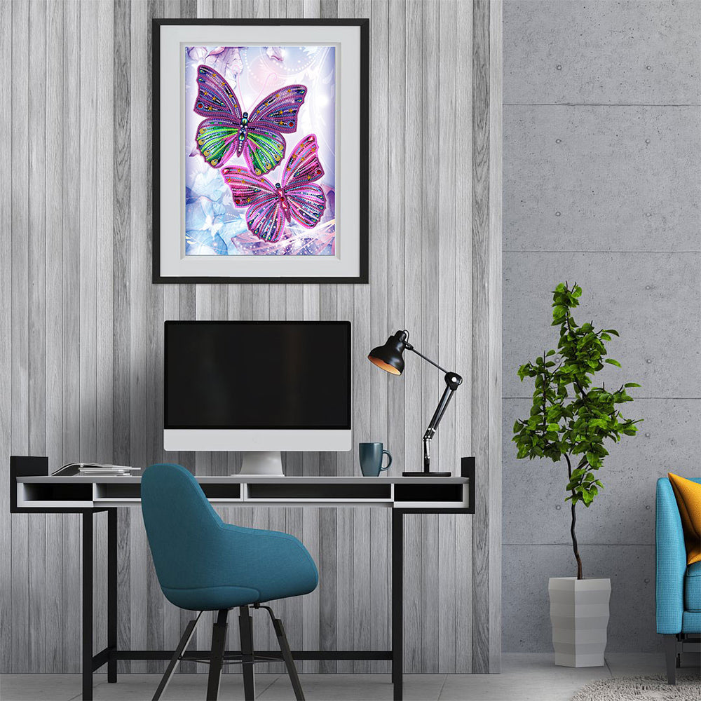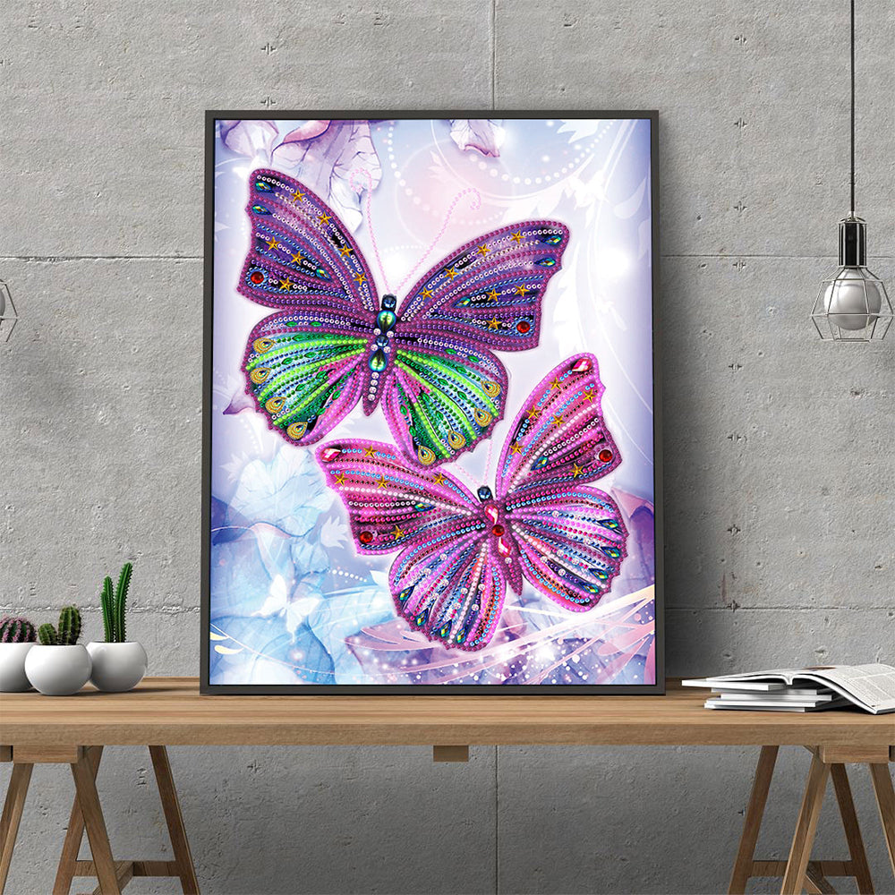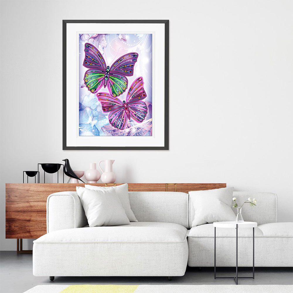 Zwei Lila Schmetterlinge Farbig Leuchtend Sonderform Diamond Painting