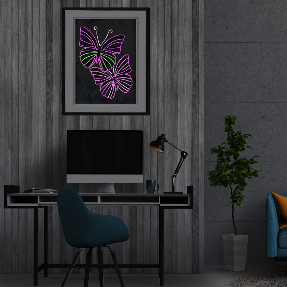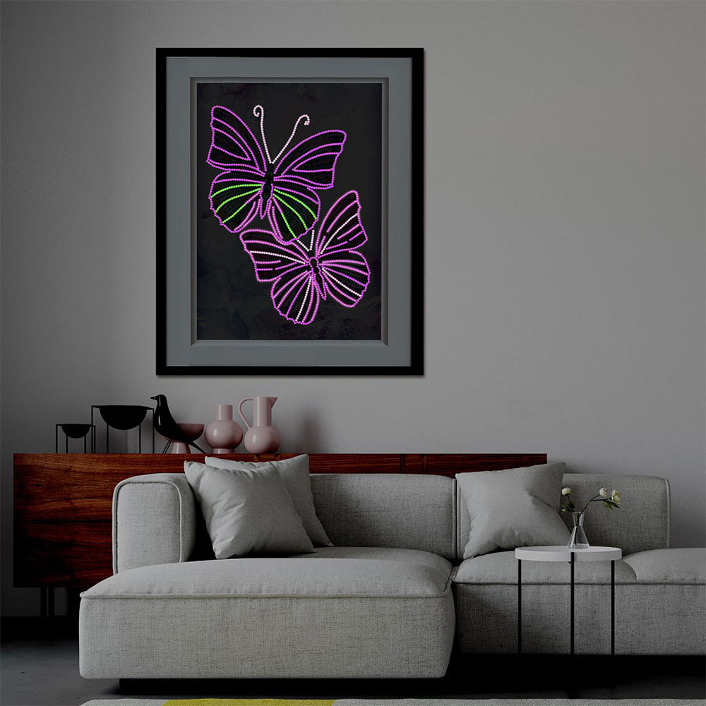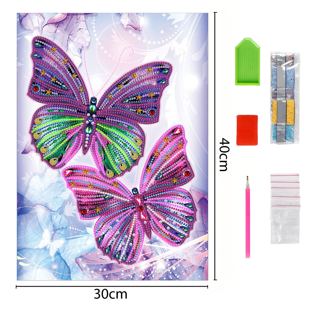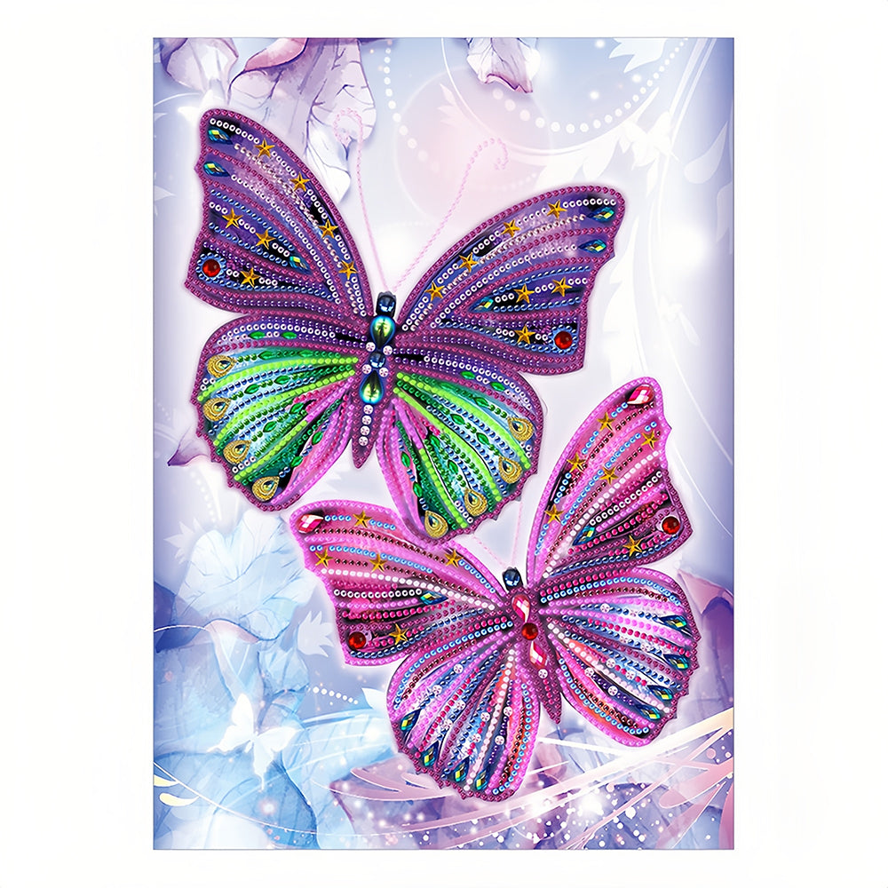 Zwei Lila Schmetterlinge Farbig Leuchtend Sonderform Diamond Painting