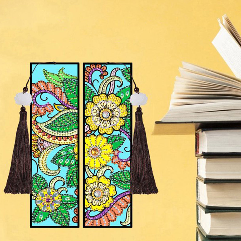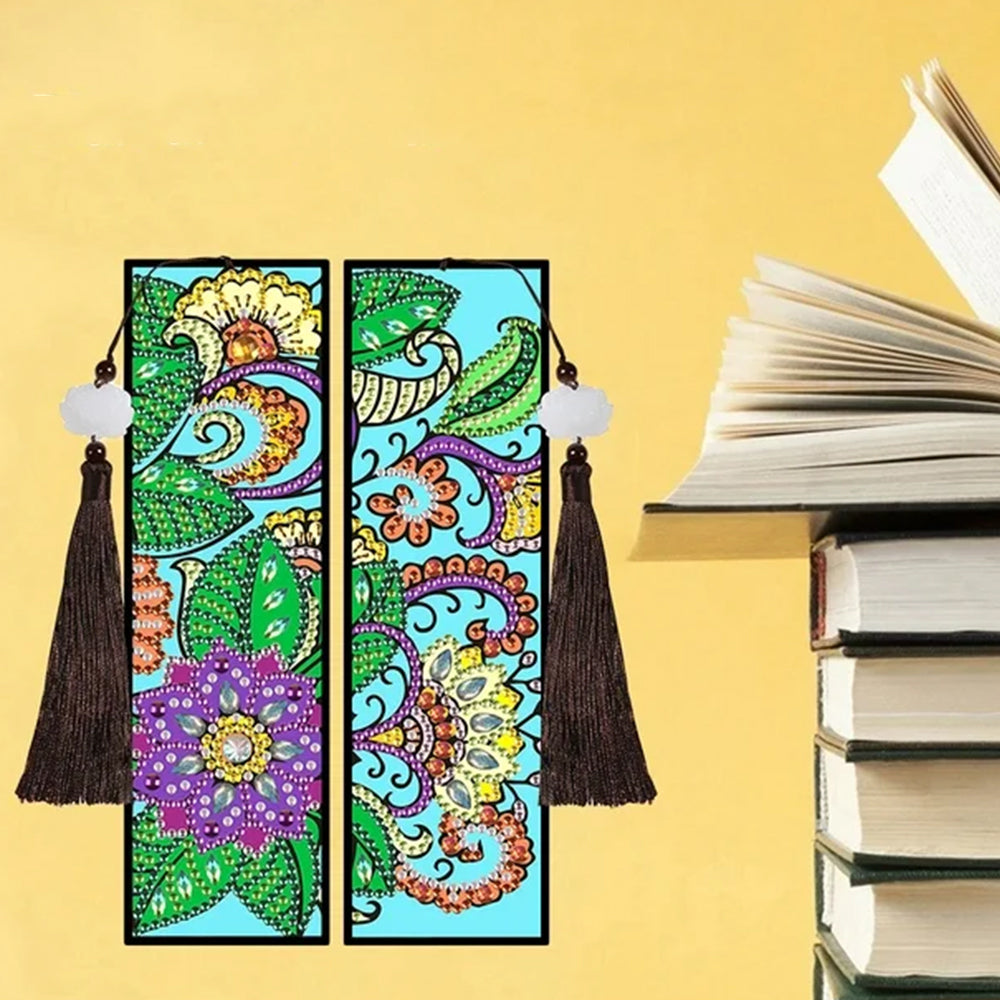 2/4St. Blumen und Reben Leder Lesezeichen Set Diamond Painting