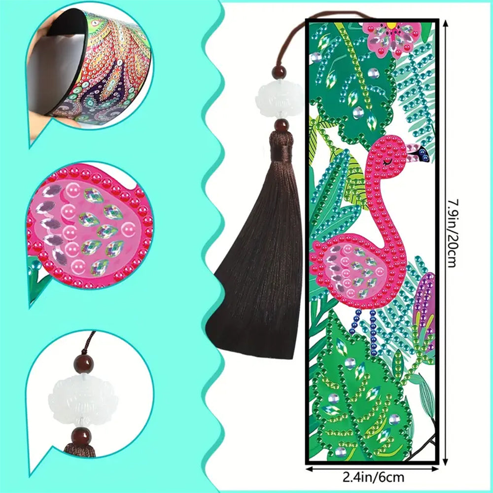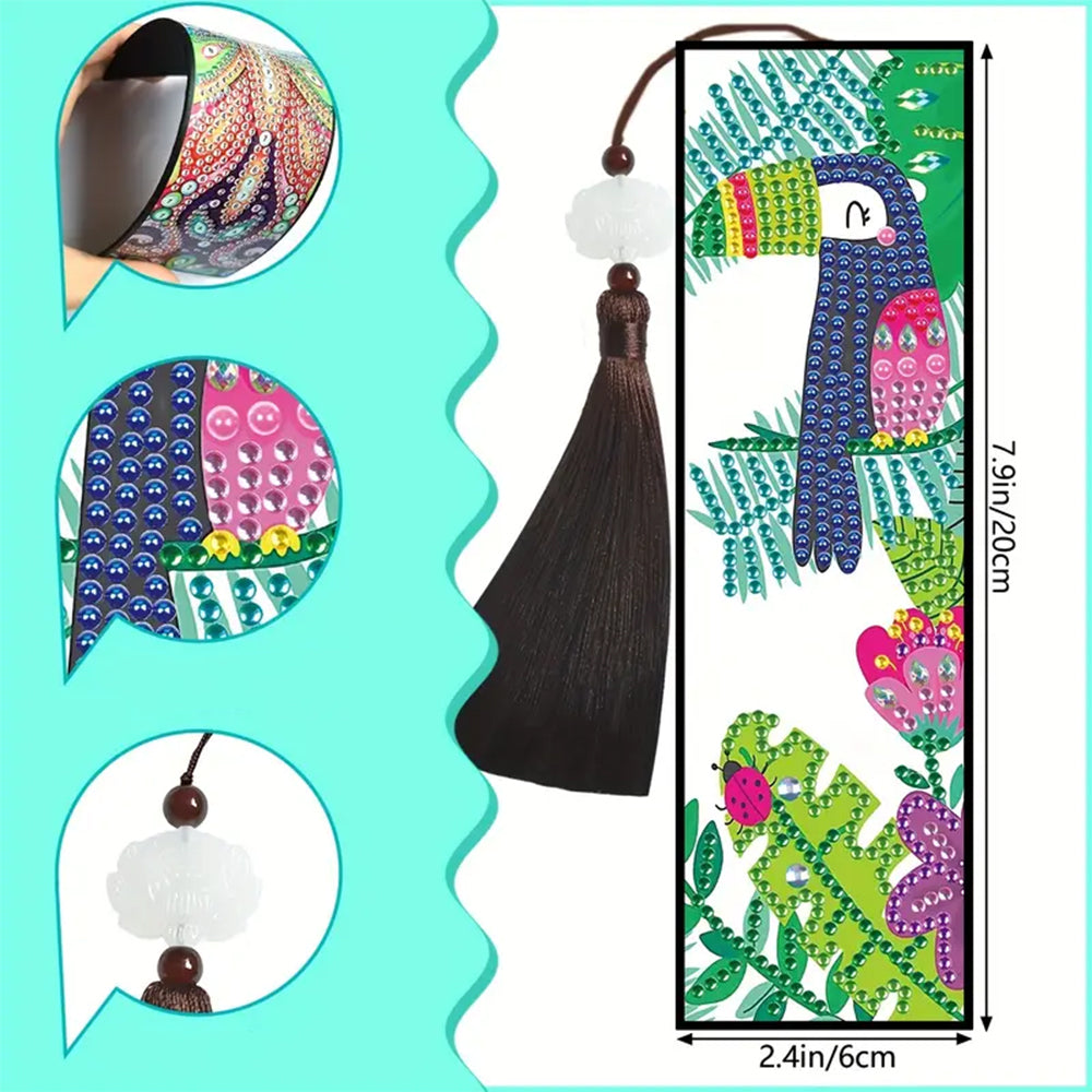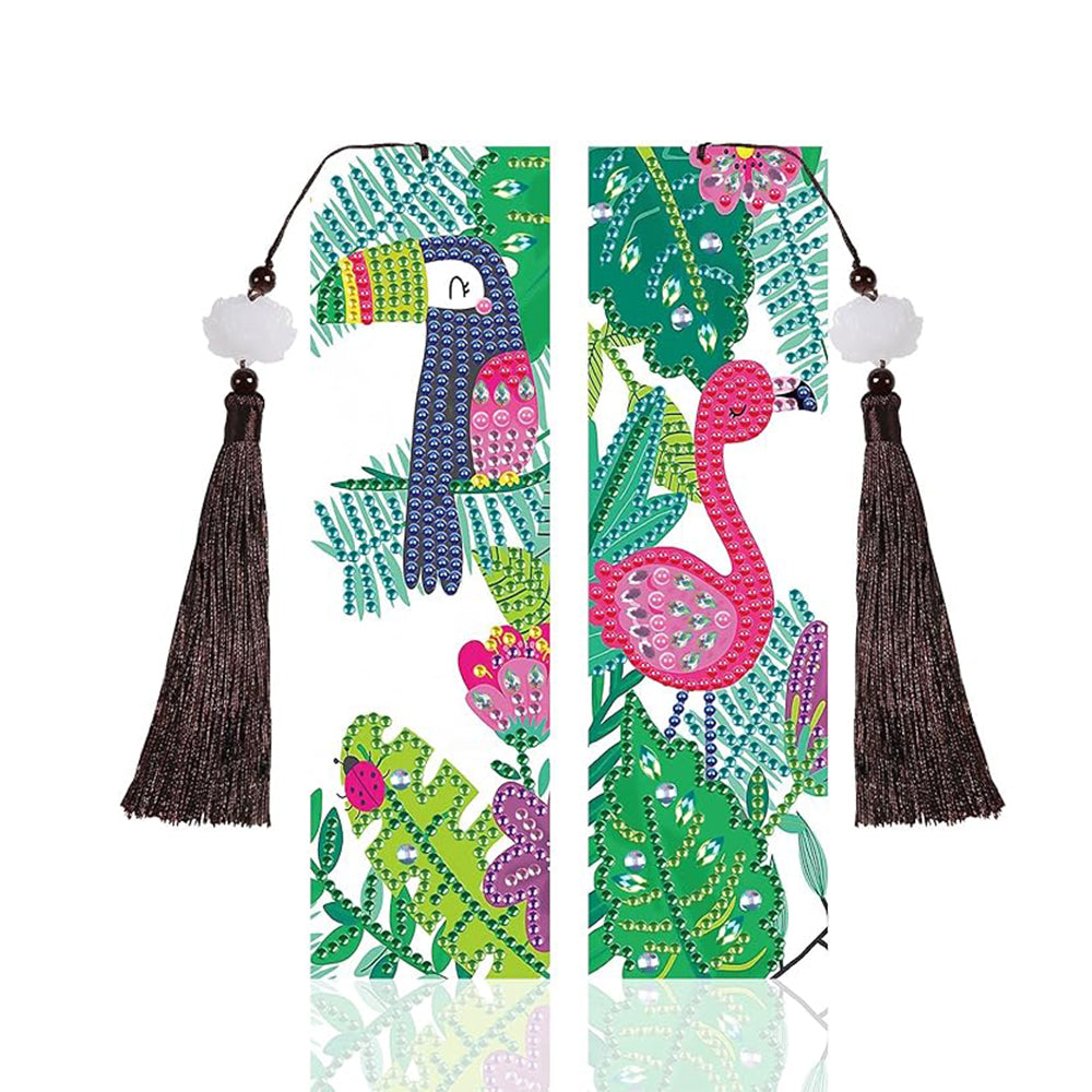 2St. Cartoon Flamingo und Tukan Leder Lesezeichen Set Diamond Painting