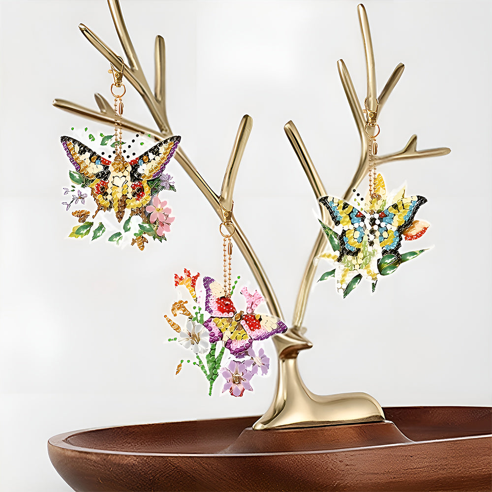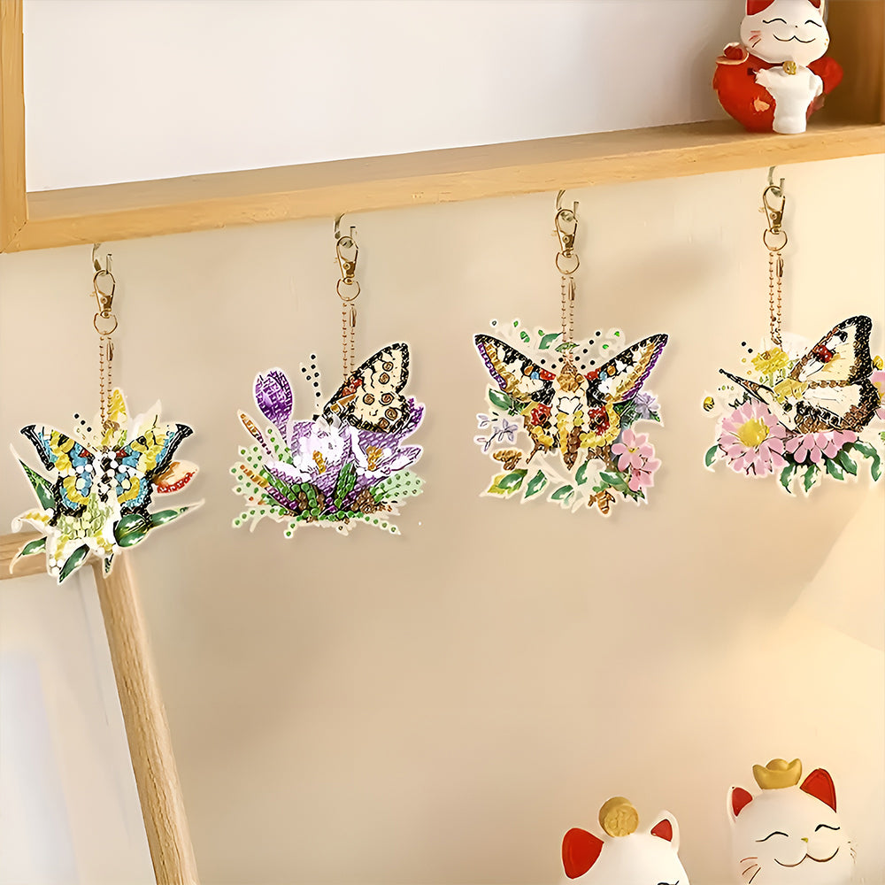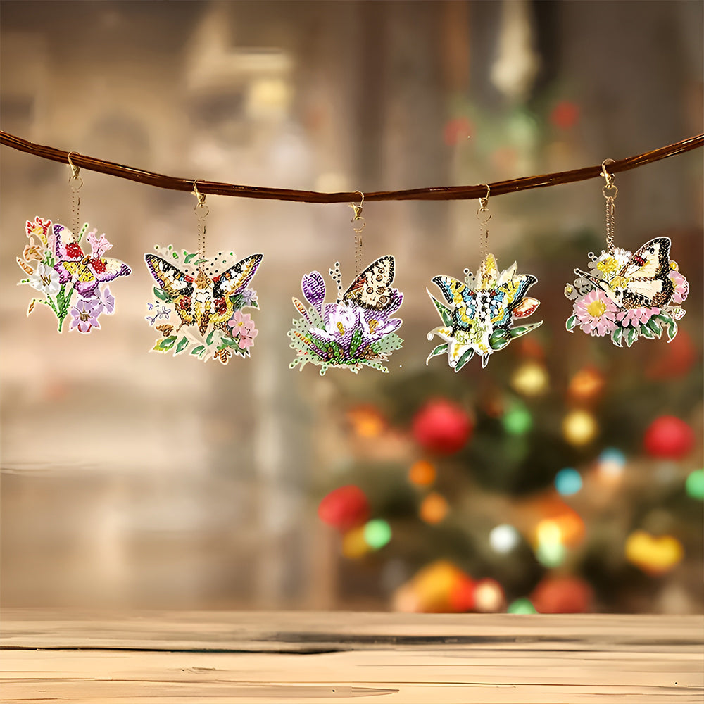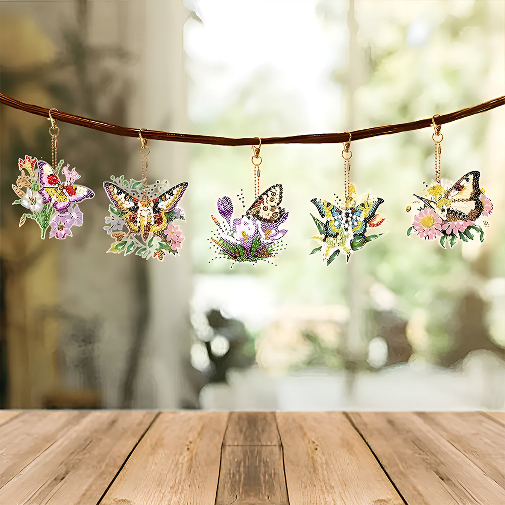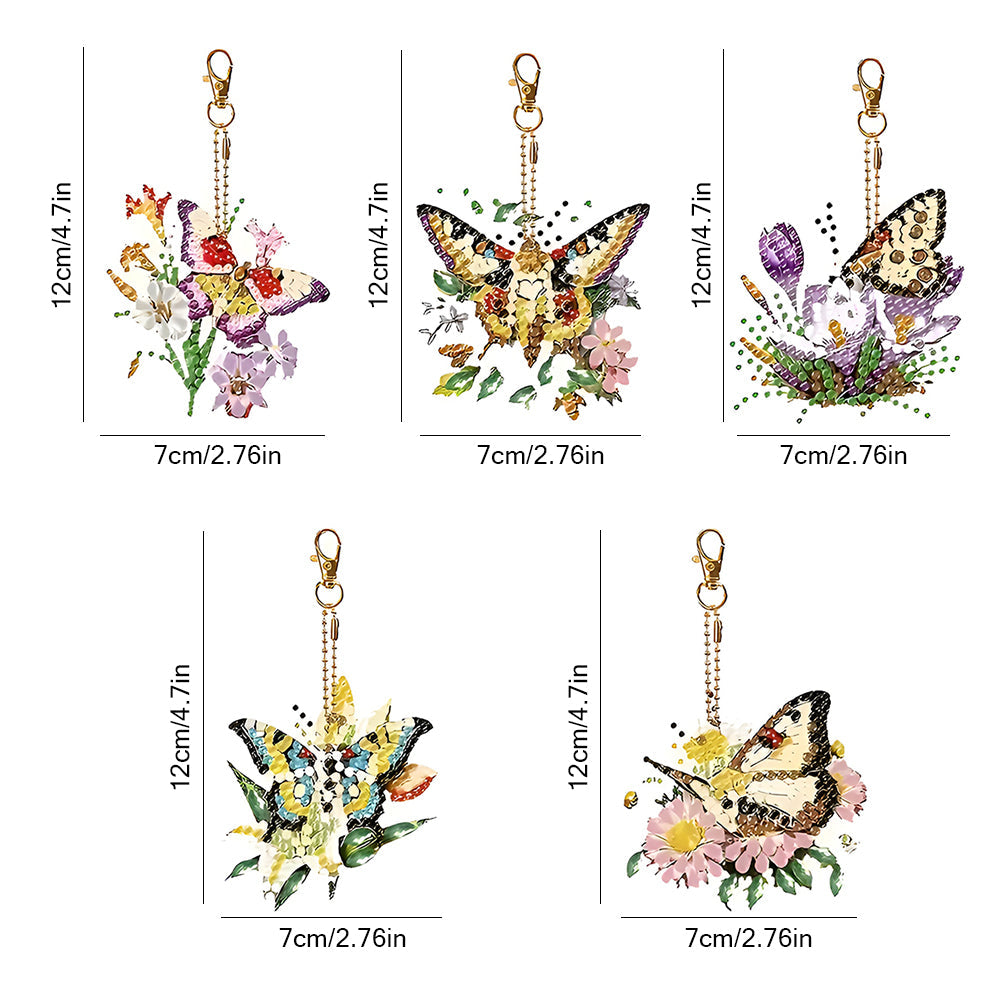 5Pcs Fliegende Schmetterlinge Acryl Doppelseitiger Schlüsselanhänger Diamond Painting