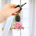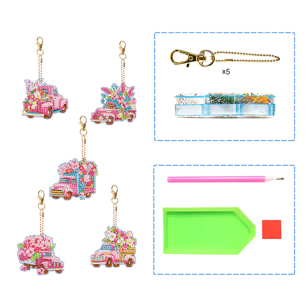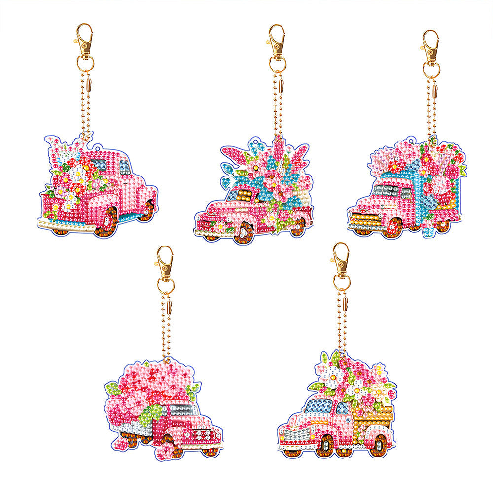 5Stück Rosa Blume Auto Acryl Doppelseitiger Schlüsselanhänger Diamond Painting