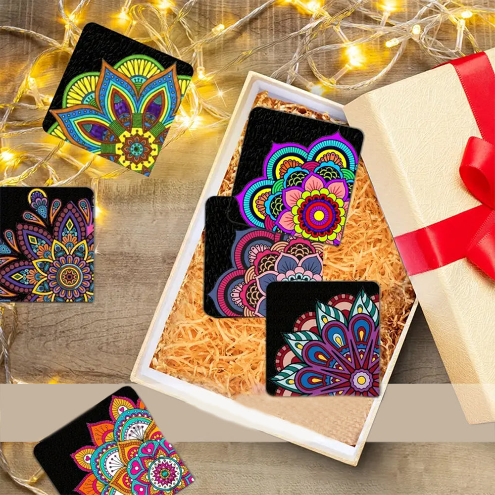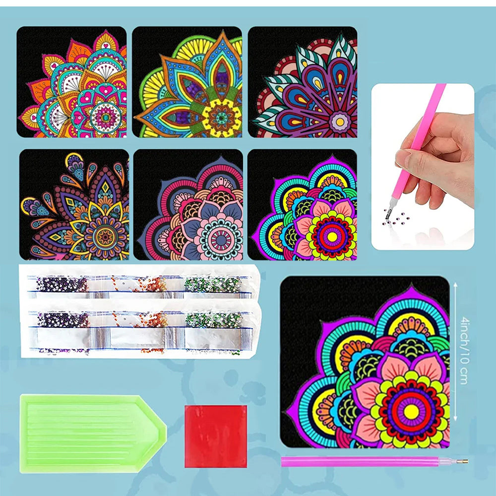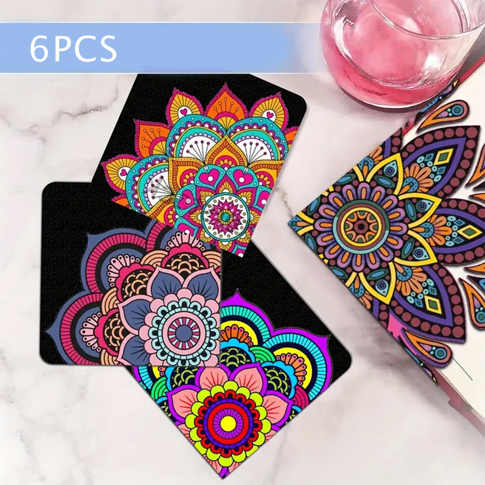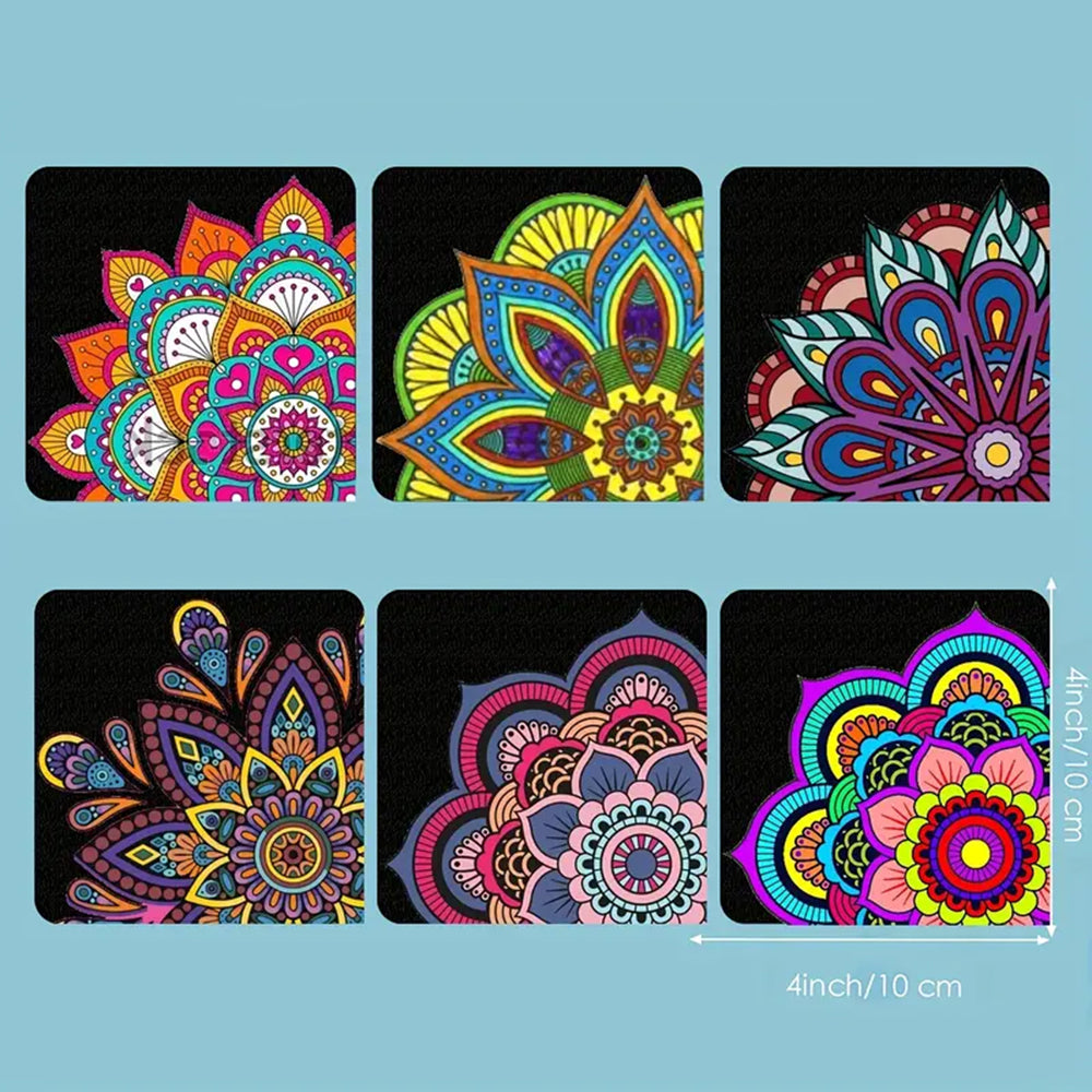 6St. Buntes Mandala PU Ecke Abdeckung Lesezeichen Set Diamond Painting