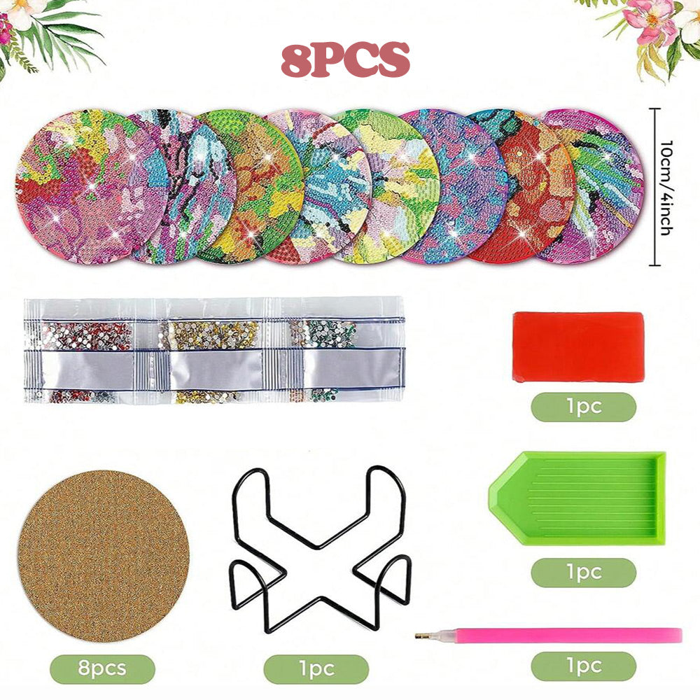 8Stück Abstrakte Blume Diamond Painting Untersetzer