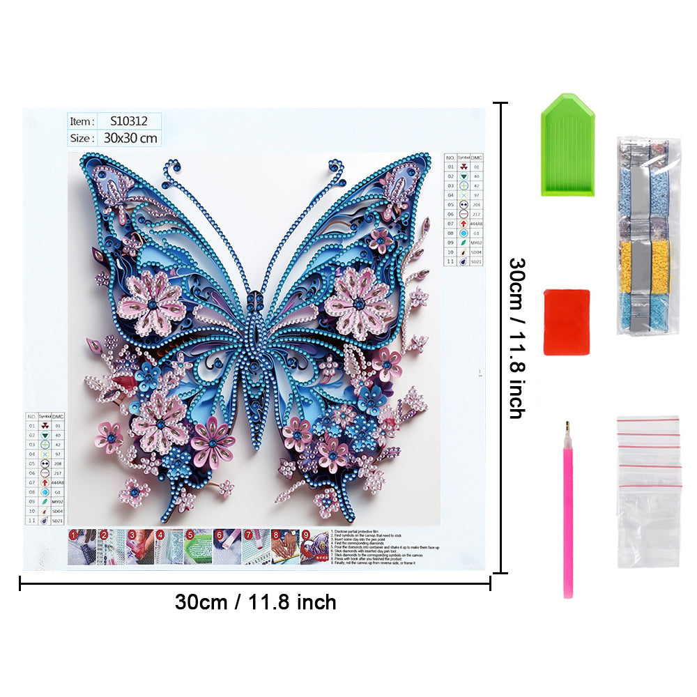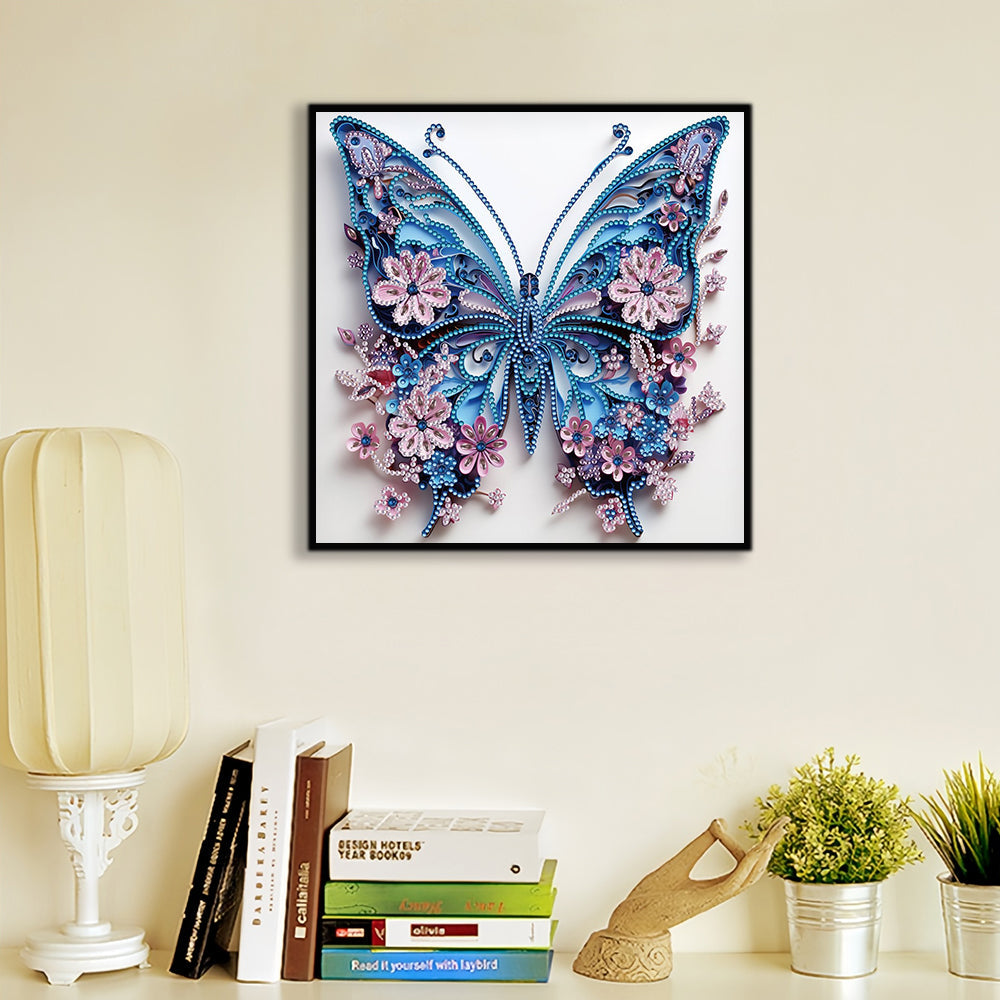 Blauer Schmetterling und Kleine Rosa Sonderform Diamond Painting