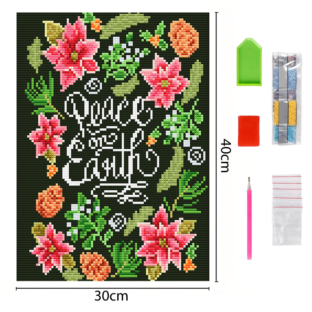 Blumen und Text Leuchtend Kristall Strass Diamond Painting
