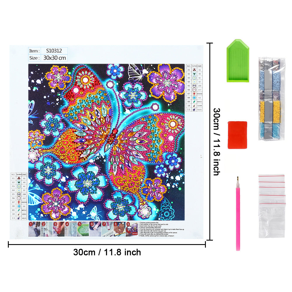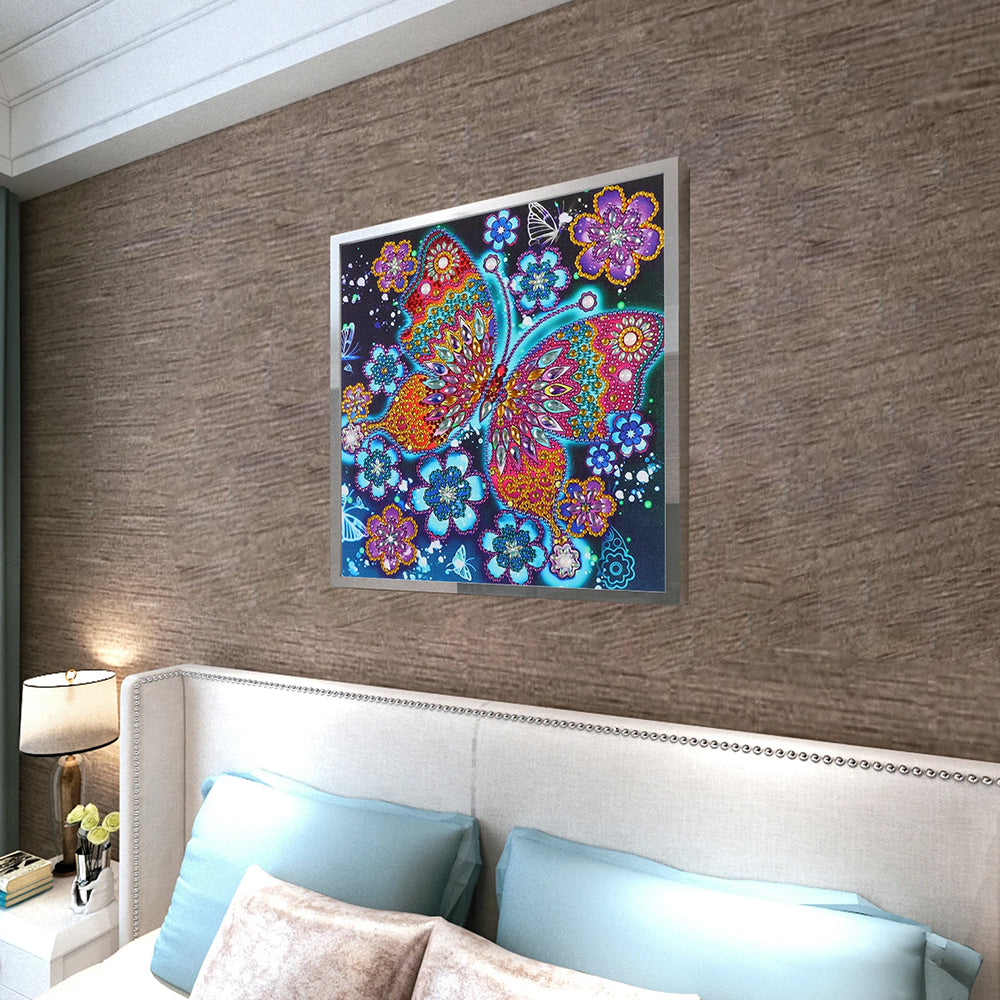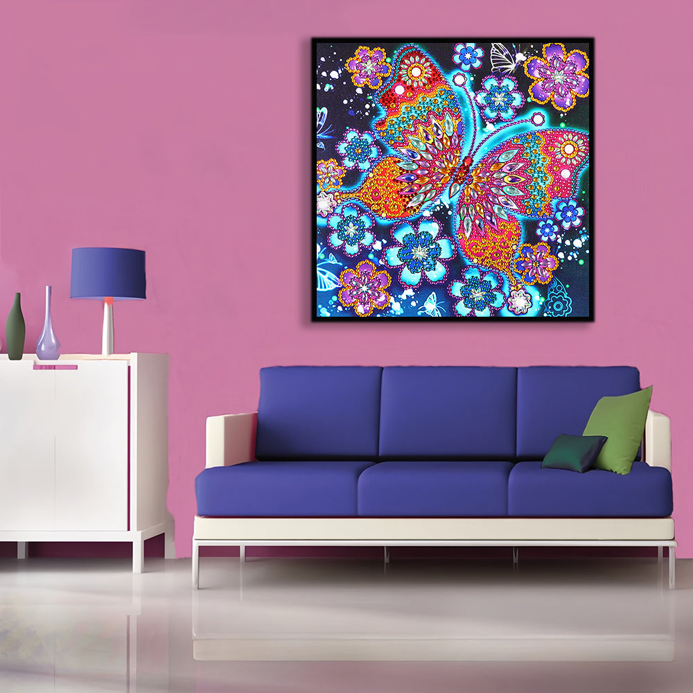Bunter Schmetterling und Blumen Sonderform Diamond Painting