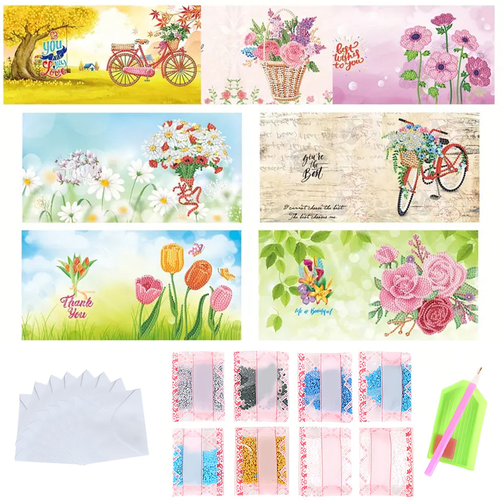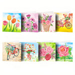 Fahrräder und Blumen Grußkarten | 8 Stück