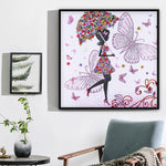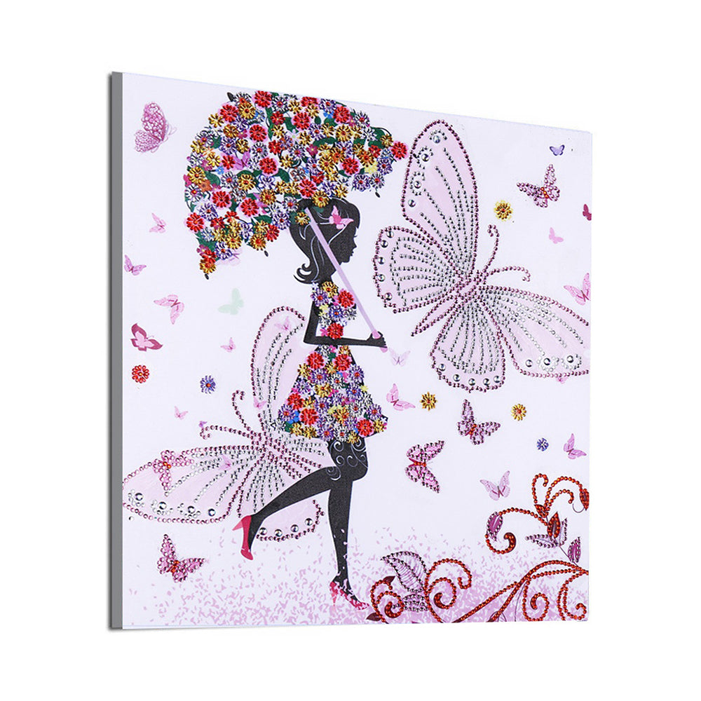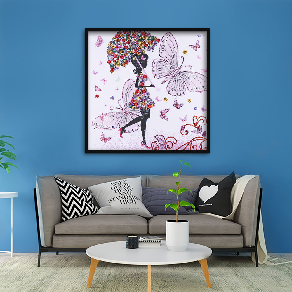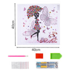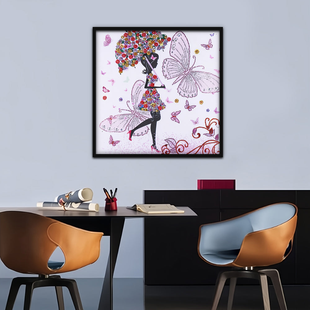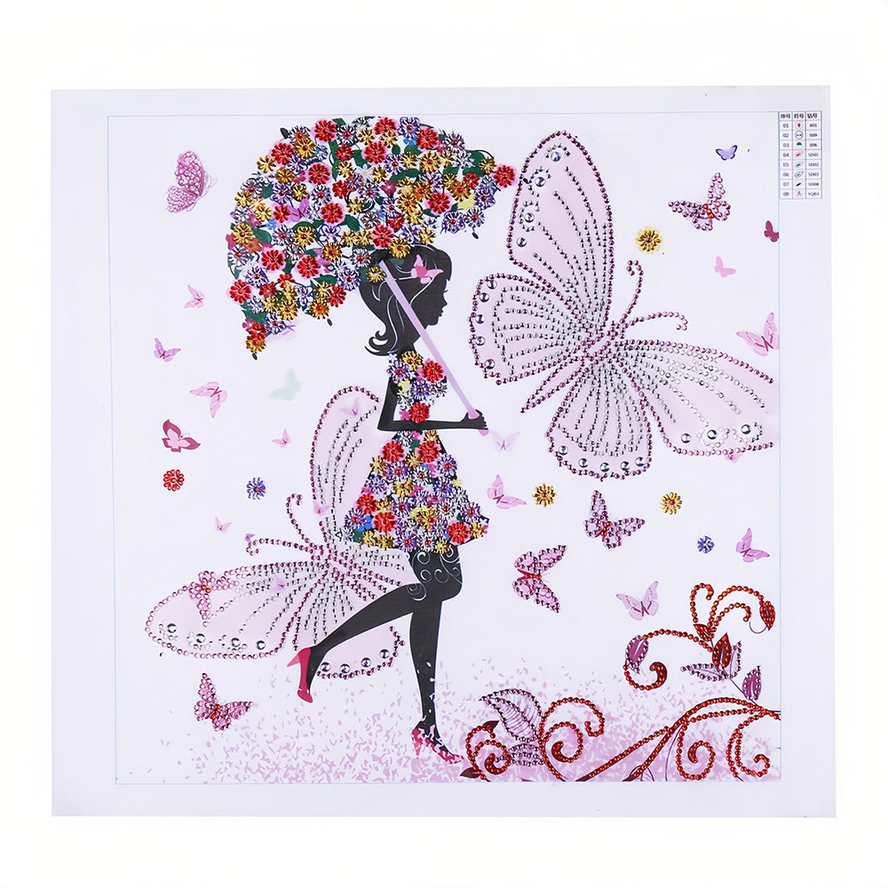 Schmetterling Mädchen hält Blume Regenschirm Sonderform Diamond Painting