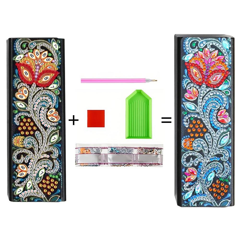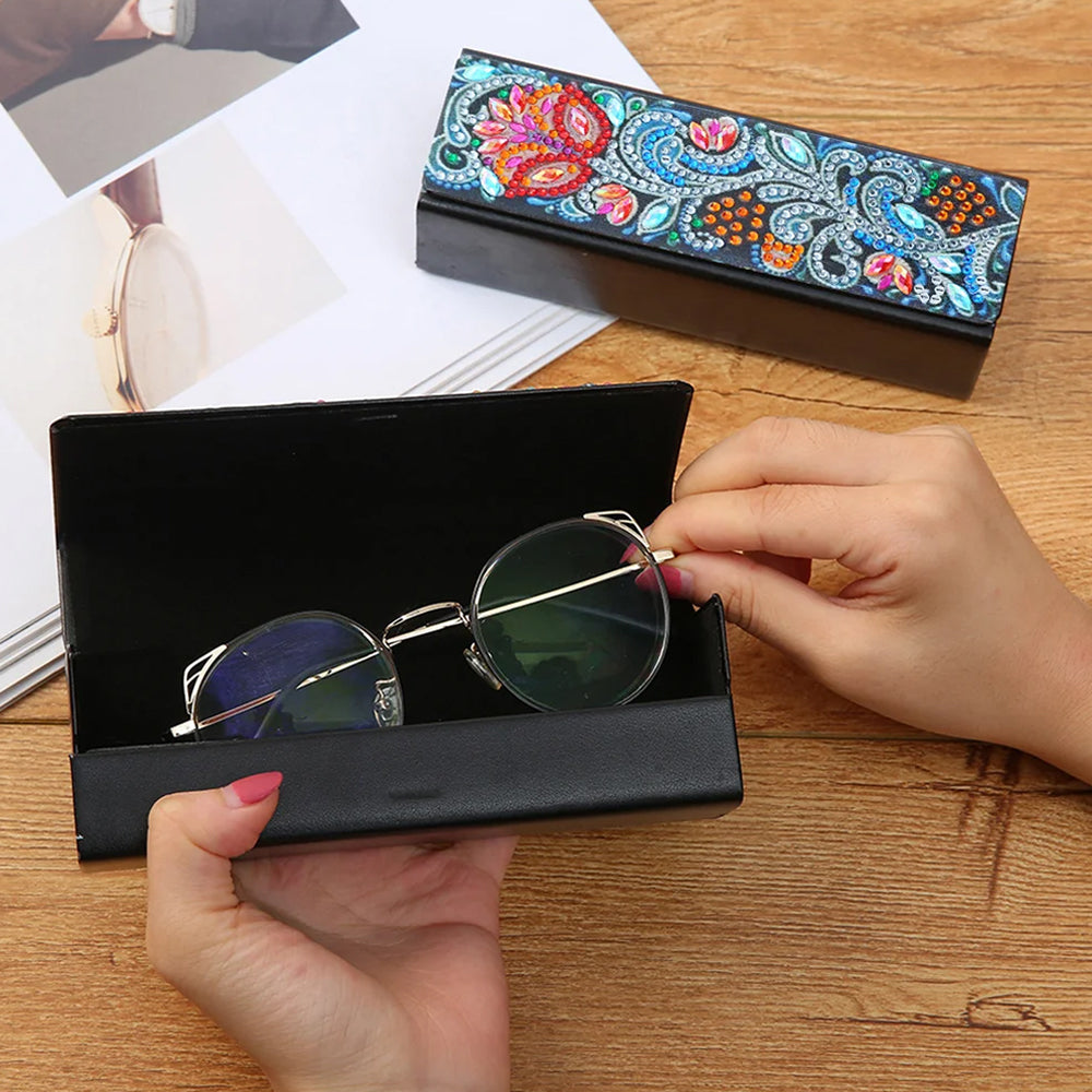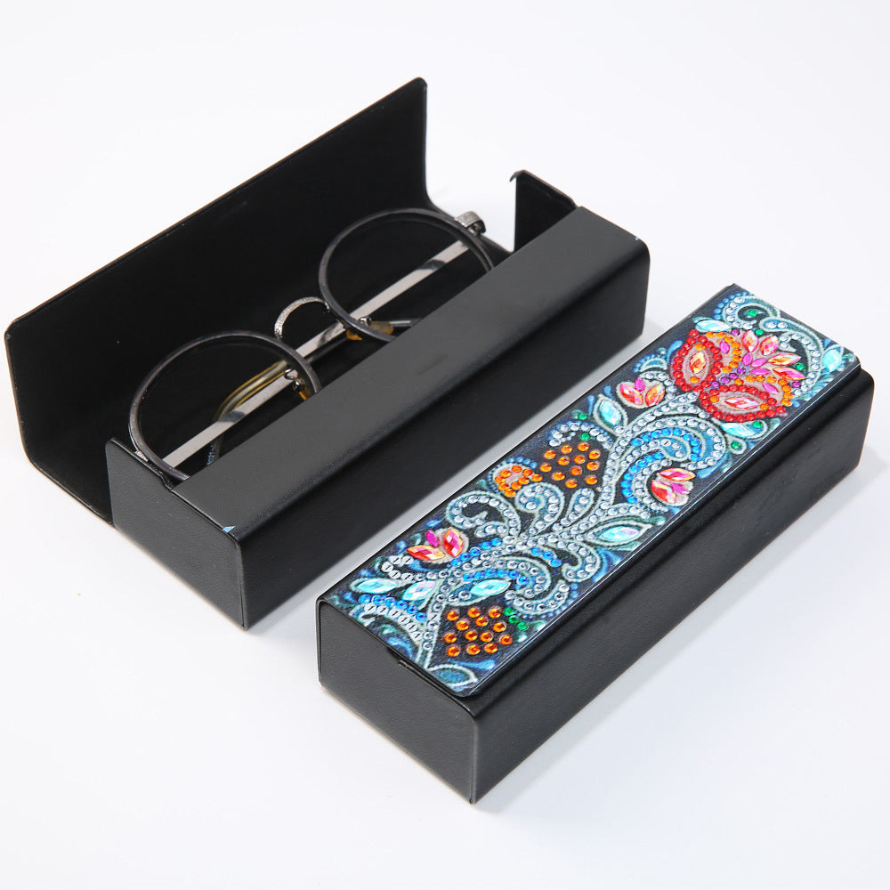 Abstrakte Rote Blume Leder Brillenetui Diamond Painting