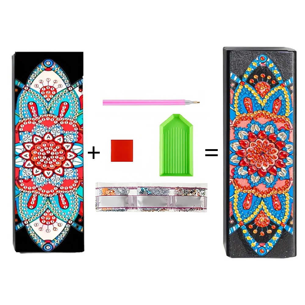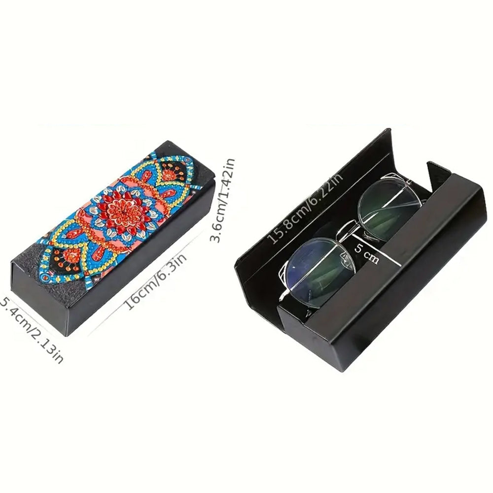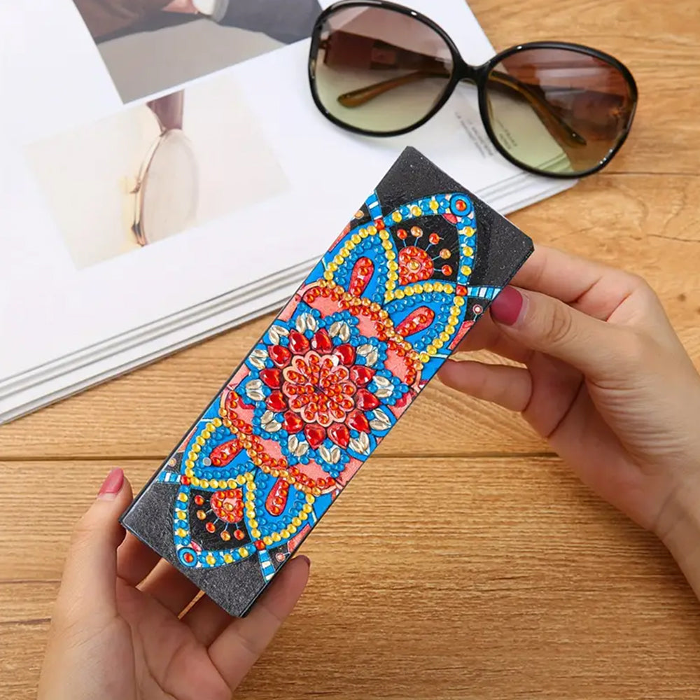 Blau und Rot Mandala Leder Brillenetui Diamond Painting