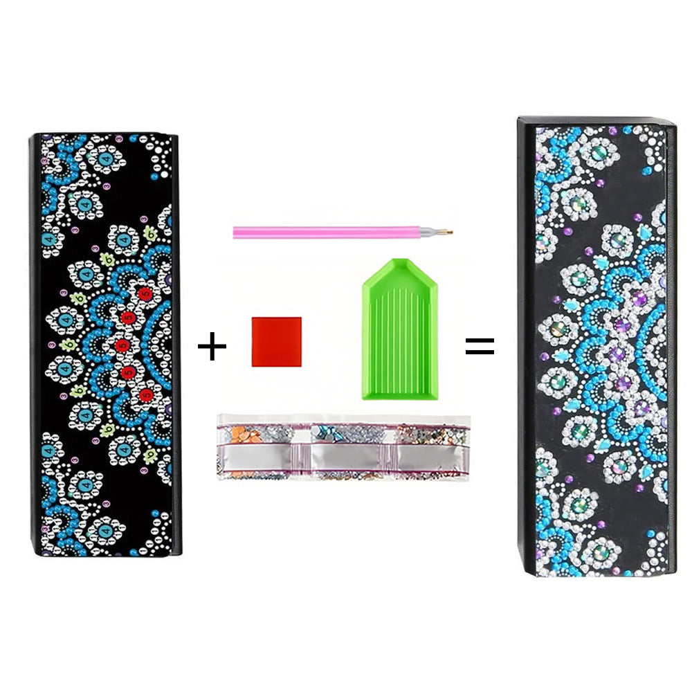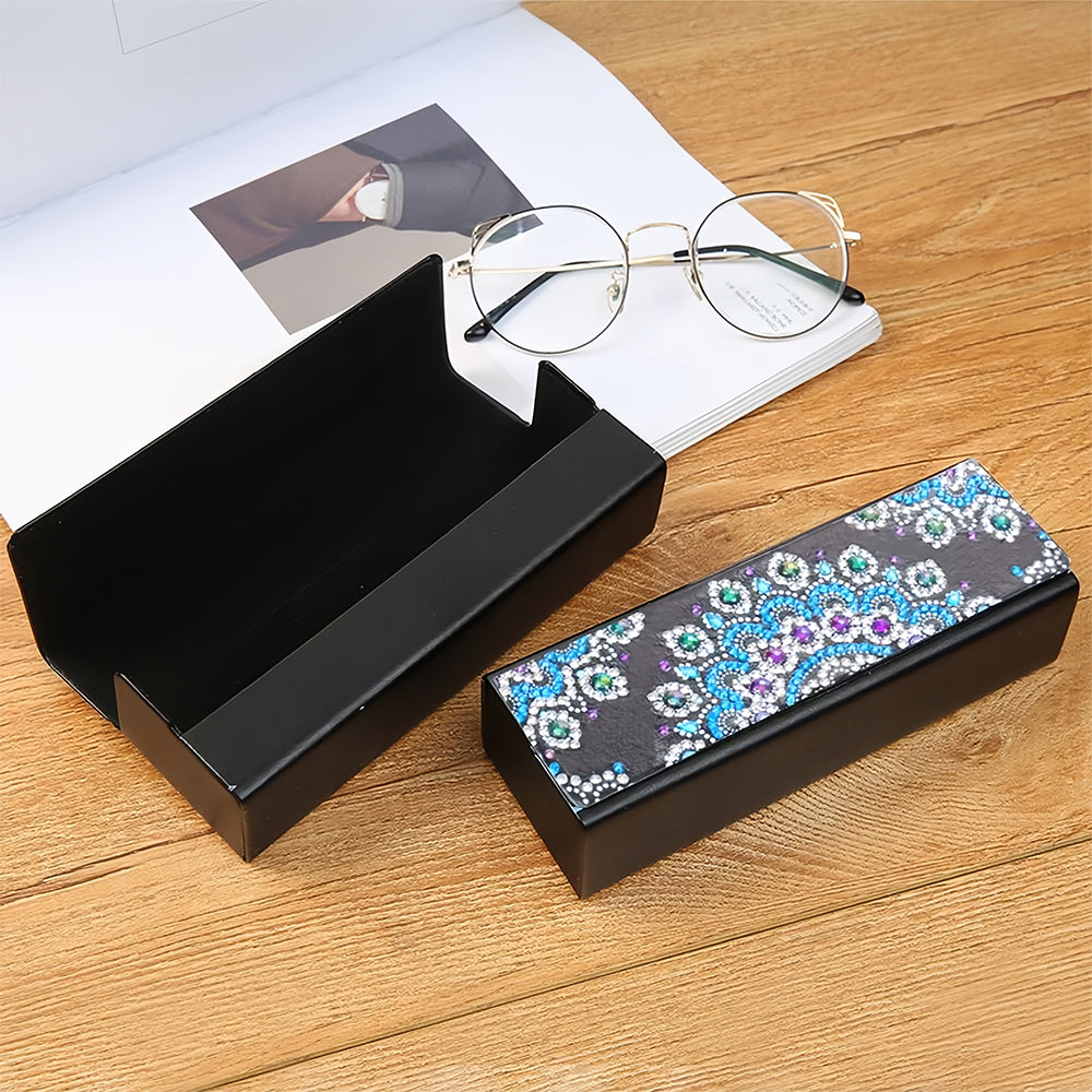 Blaues Lotus Mandala Leder Brillenetui Diamond Painting