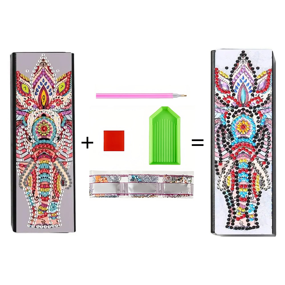 Bunter Abstrakter Elefant Leder Brillenetui Diamond Painting