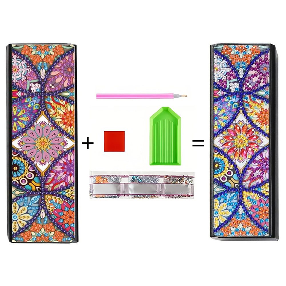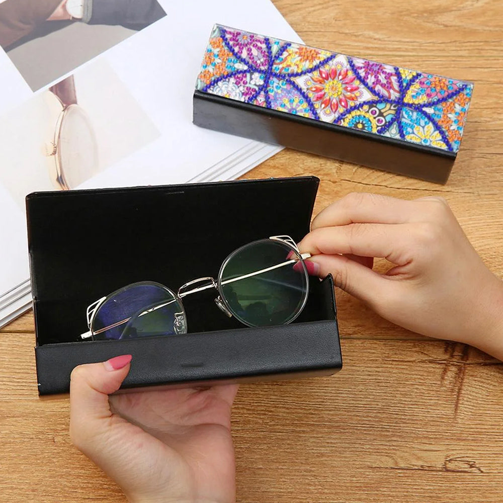 Buntes Retro Mandala Leder Brillenetui Diamond Painting