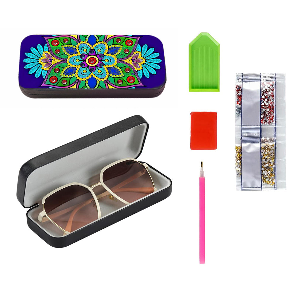Grüne Blume Mandala Leder Brillenetui Diamond Painting