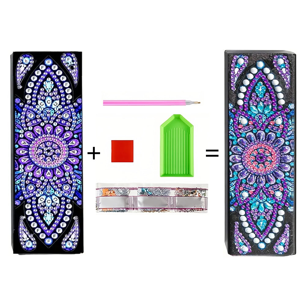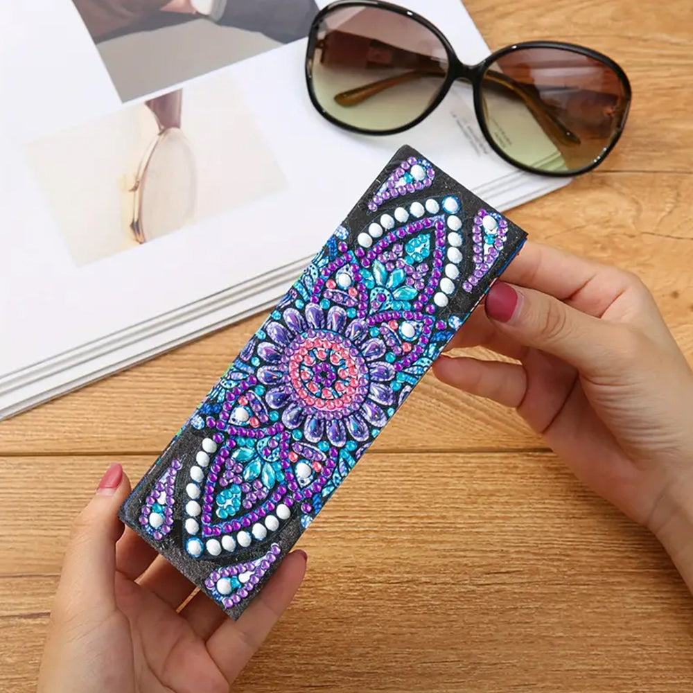 Lila Gänseblümchen Mandala Leder Brillenetui Diamond Painting