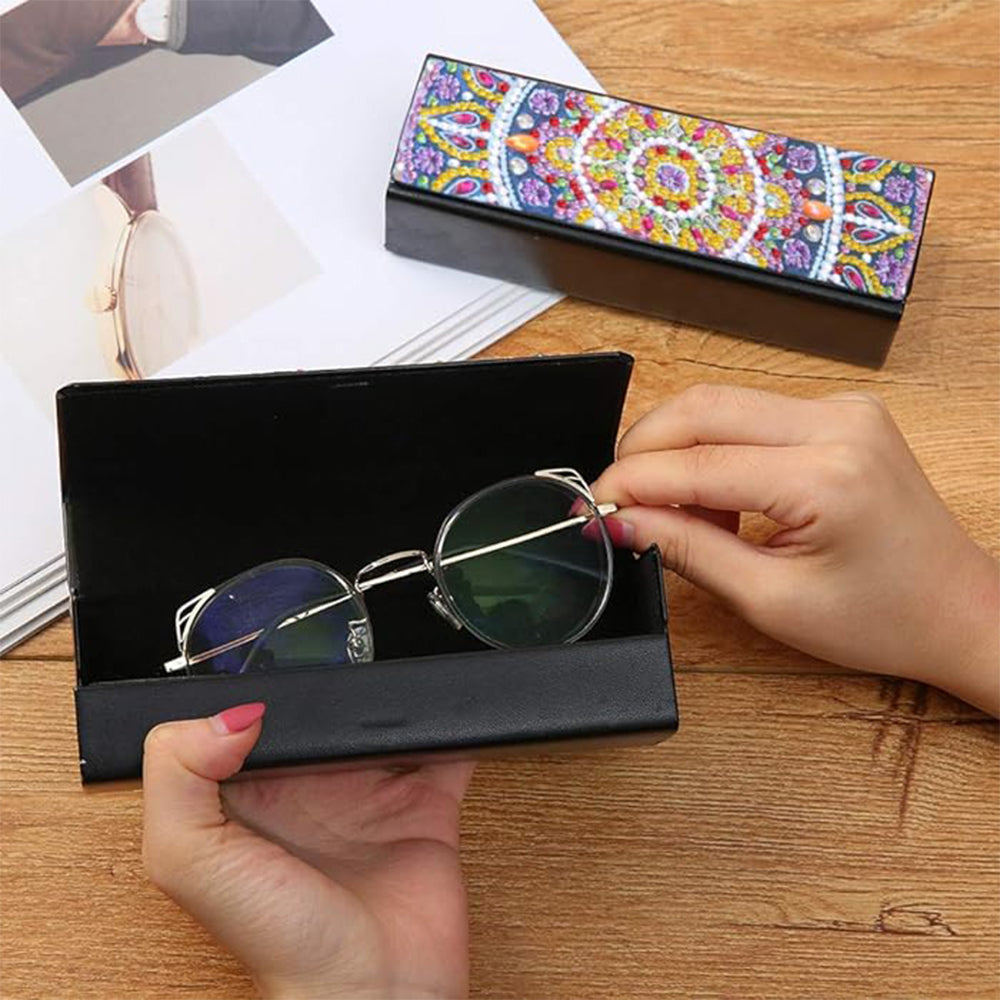 Lila und Gelbes Mandala Leder Brillenetui Diamond Painting