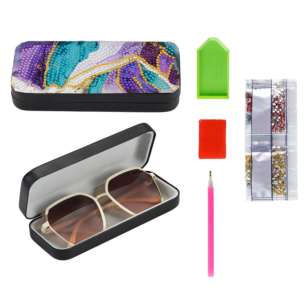 Lila und Grün Muster Leder Brillenetui Diamond Painting