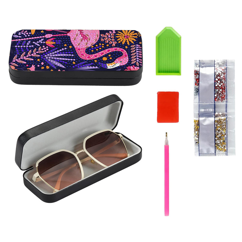 Romantischer Rosa Flamingo Leder Brillenetui Diamond Painting