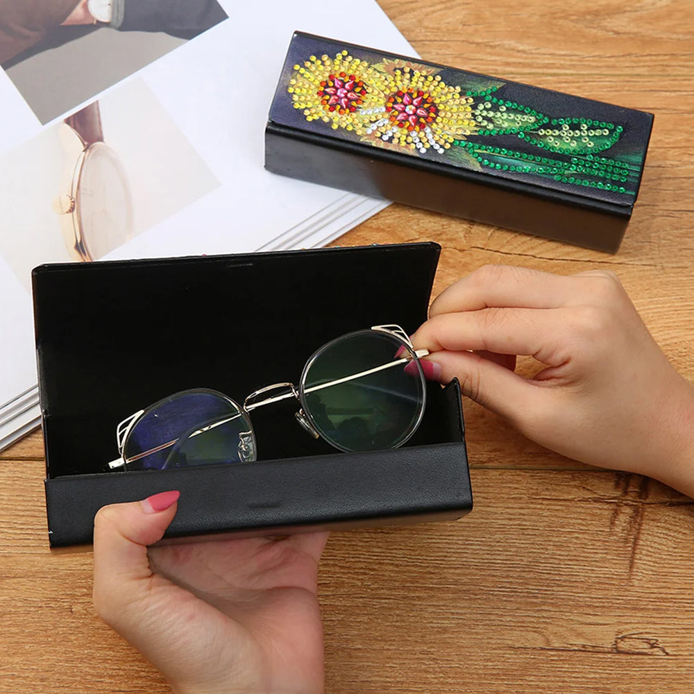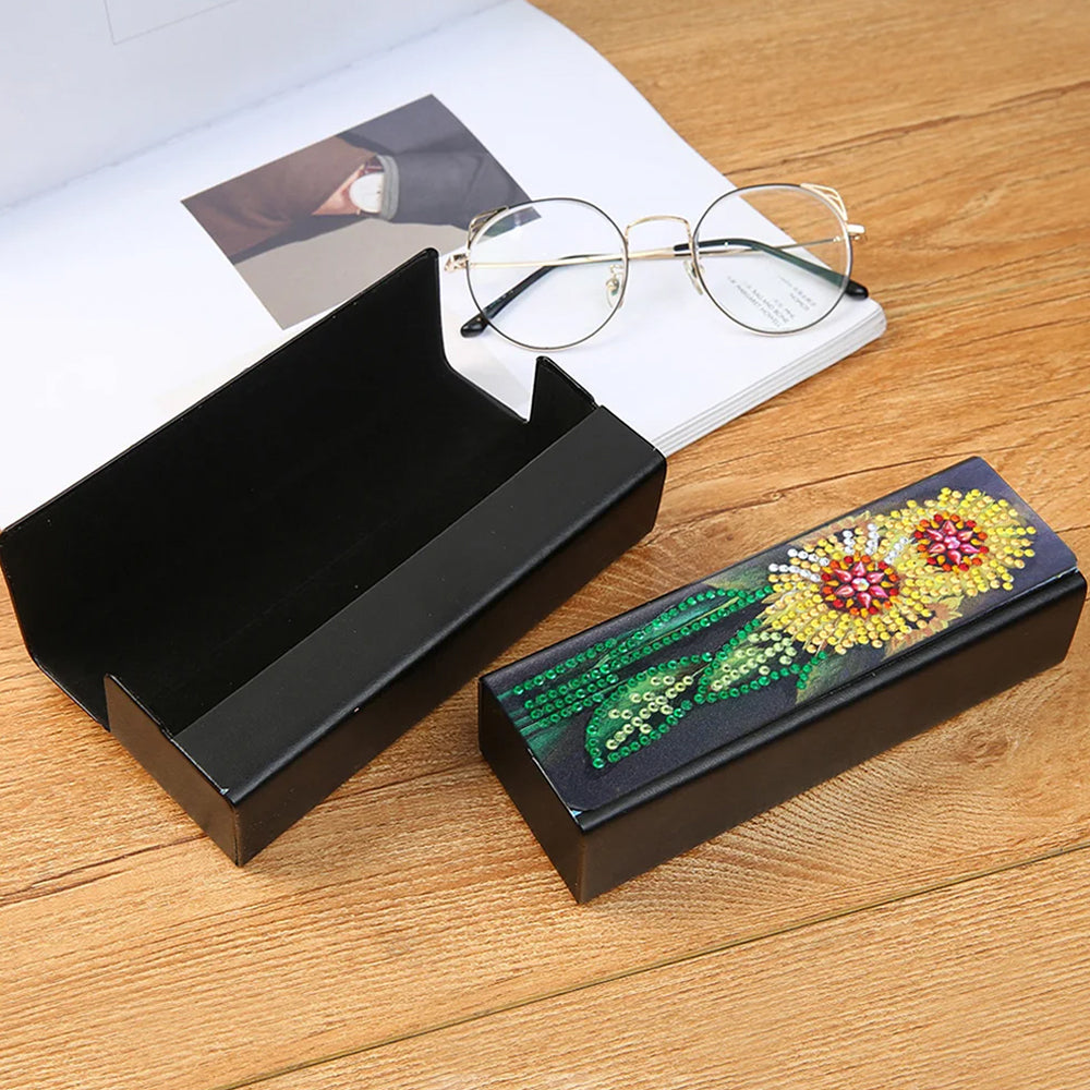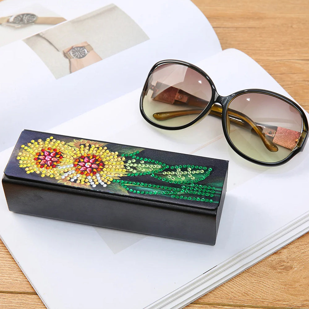 Zwei Sonnenblumen Leder Brillenetui Diamond Painting