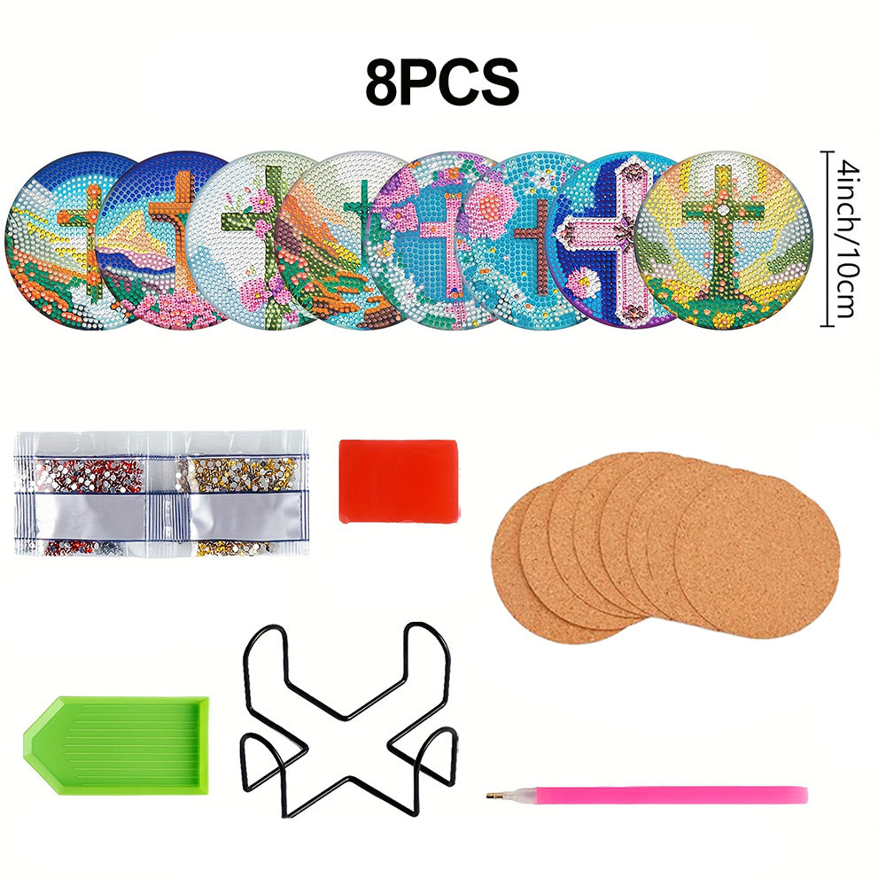 Christentum Kreuz Diamond Painting Untersetzer 8Pcs