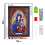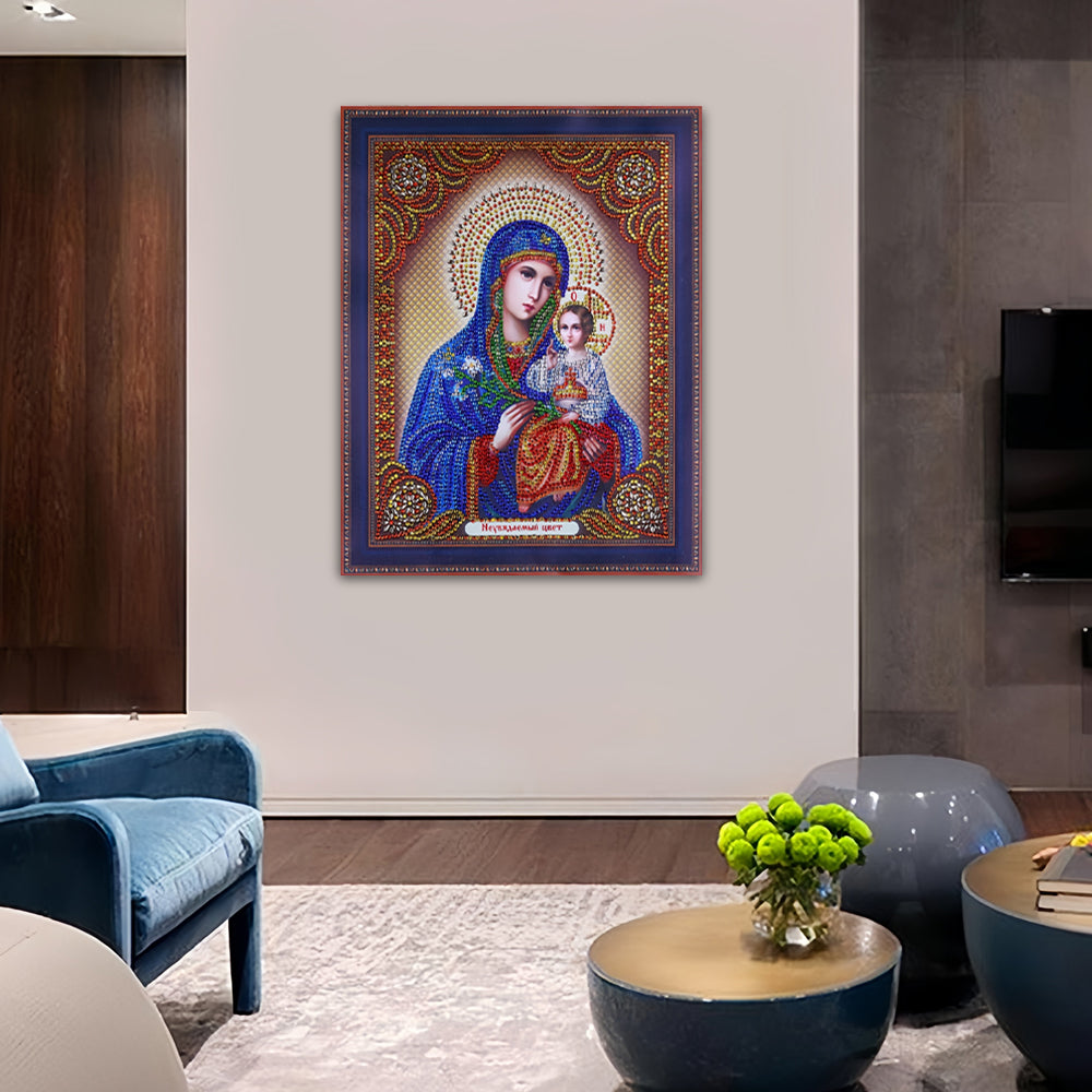 Jungfrau in Blau und Kind Sonderform Diamond Painting