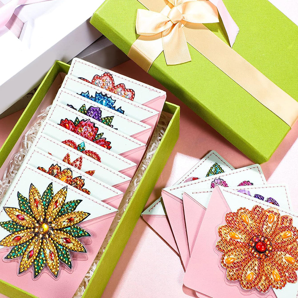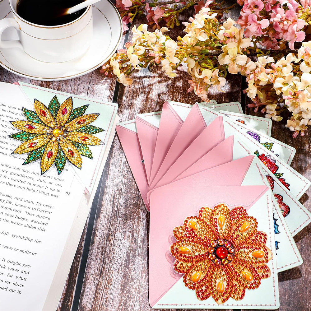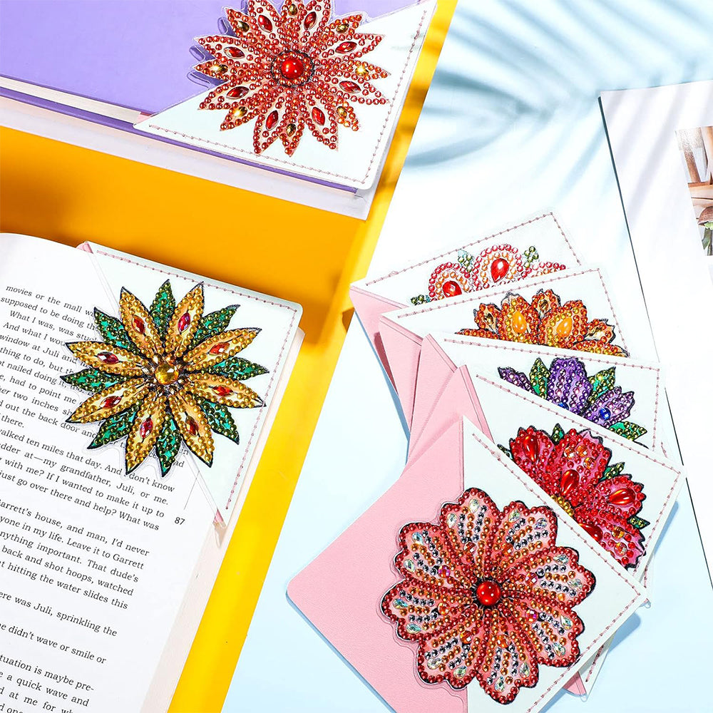 12St. Verschiedene Chrysanthemen PU Ecke Abdeckung Lesezeichen Set Diamond Painting