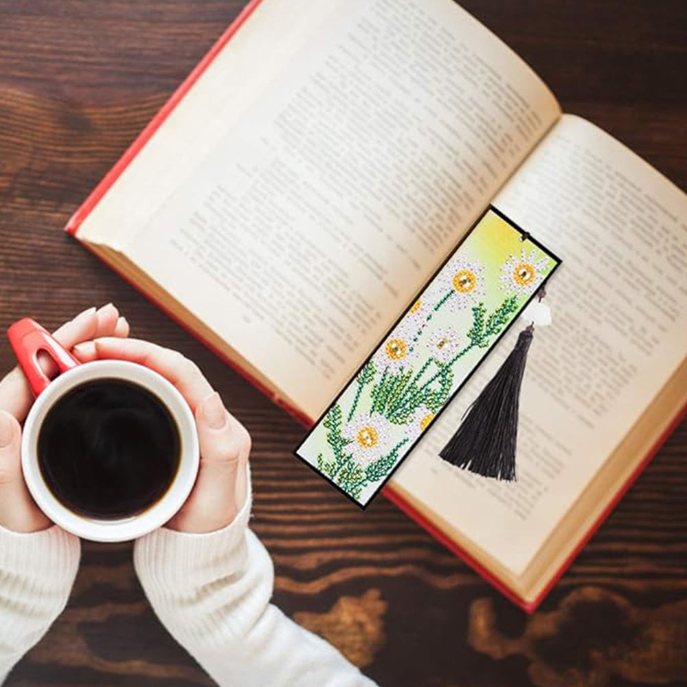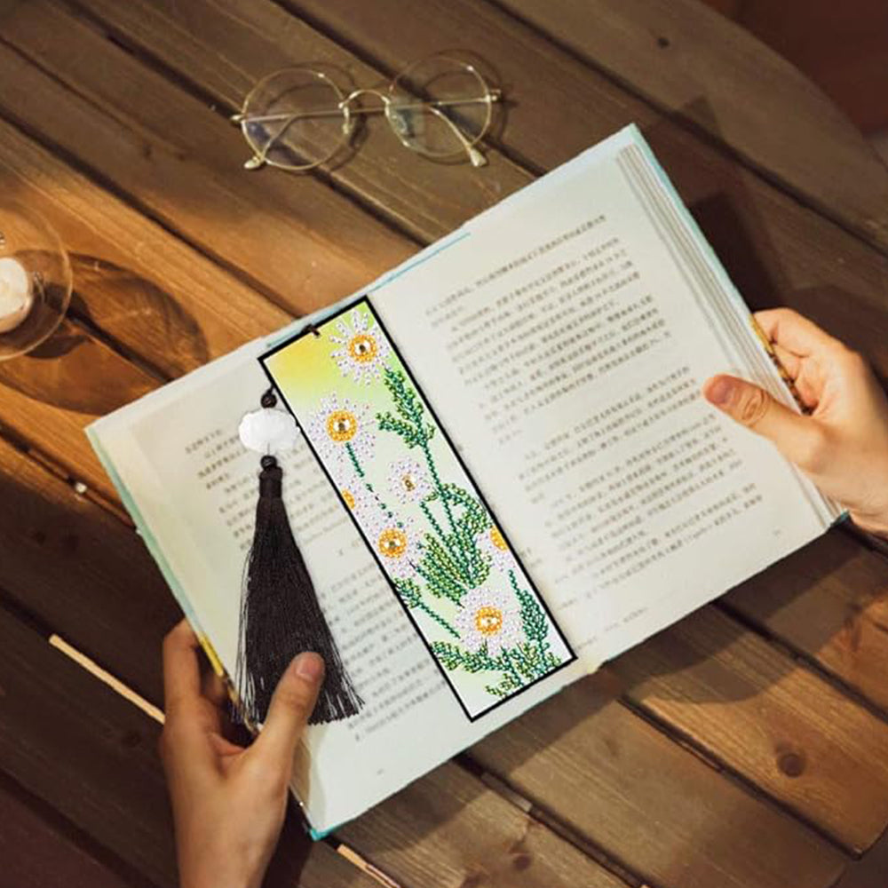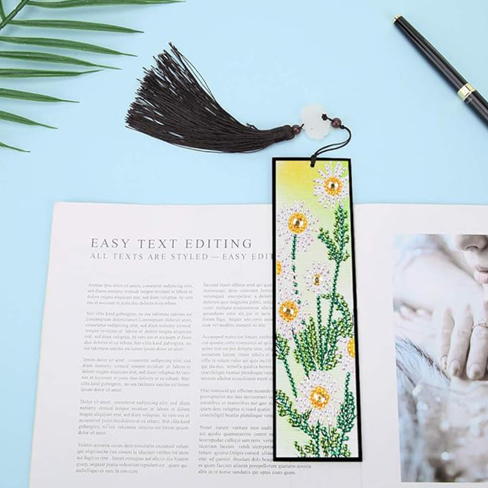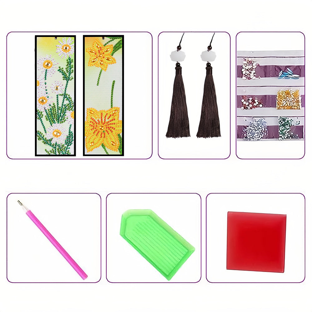 2St. Gänseblümchen und Narzissen Leder Lesezeichen Set Diamond Painting