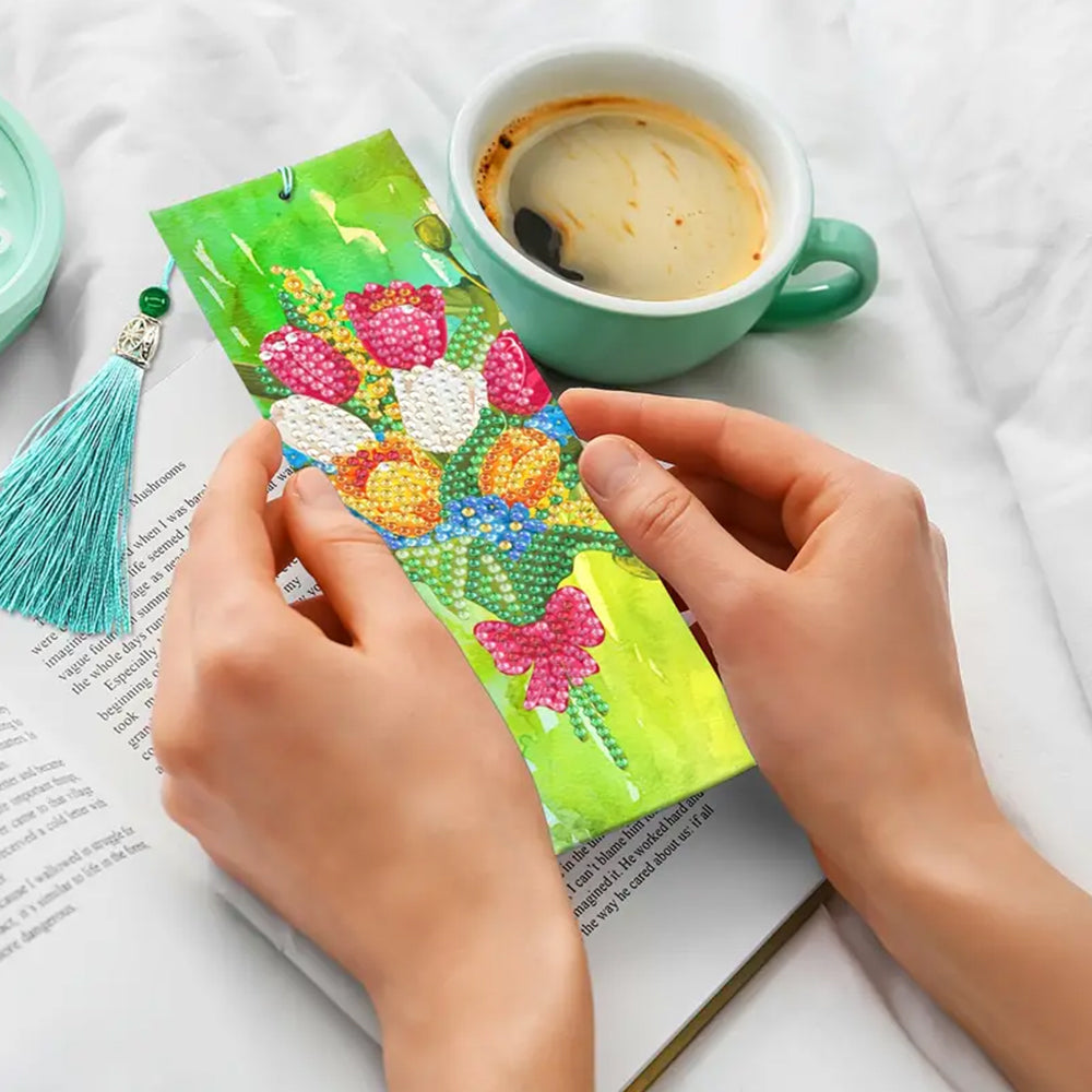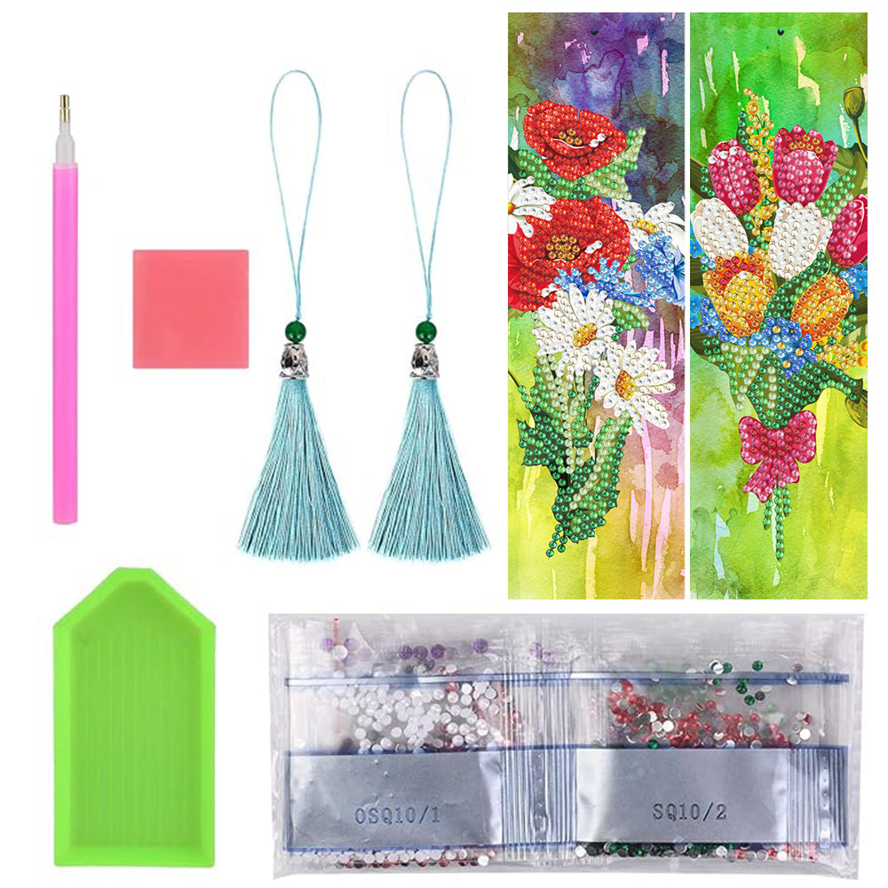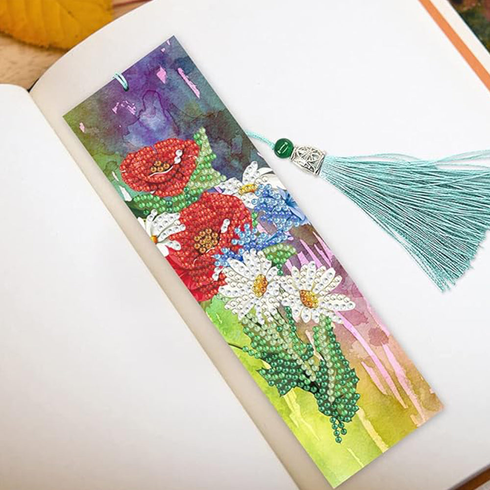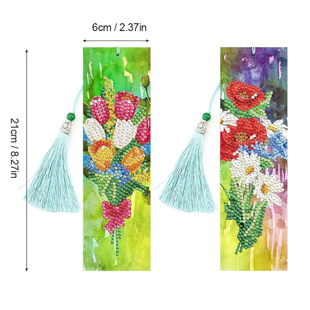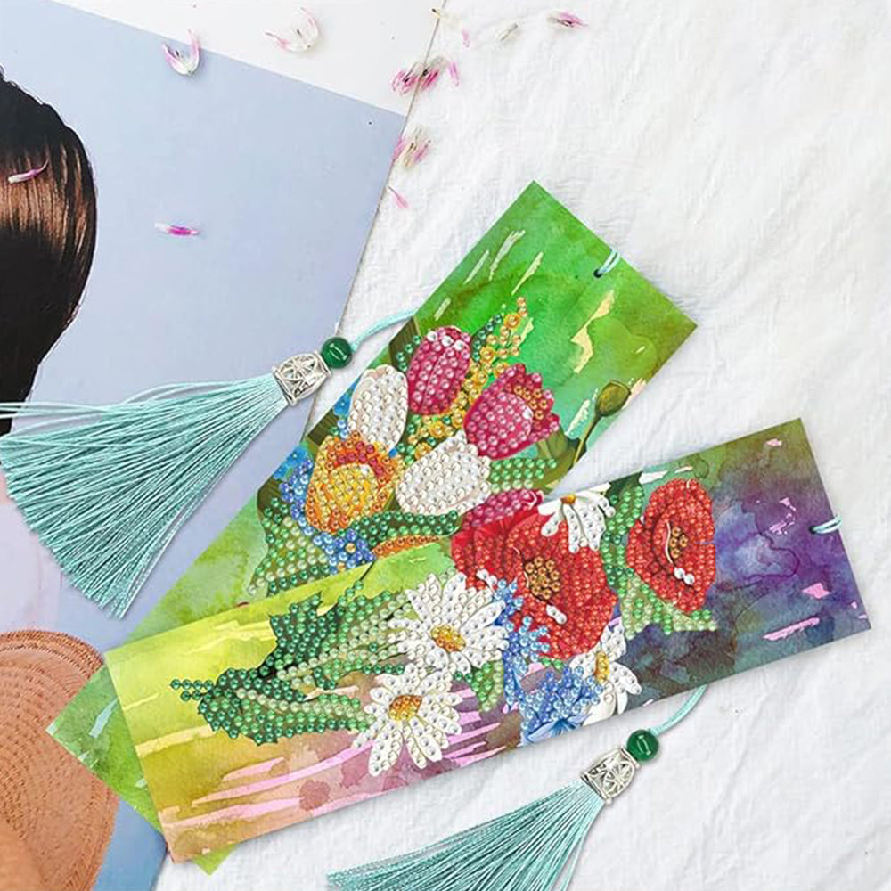 2St. Tulpe Mohn und Gänseblümchen Leder Lesezeichen Set Diamond Painting