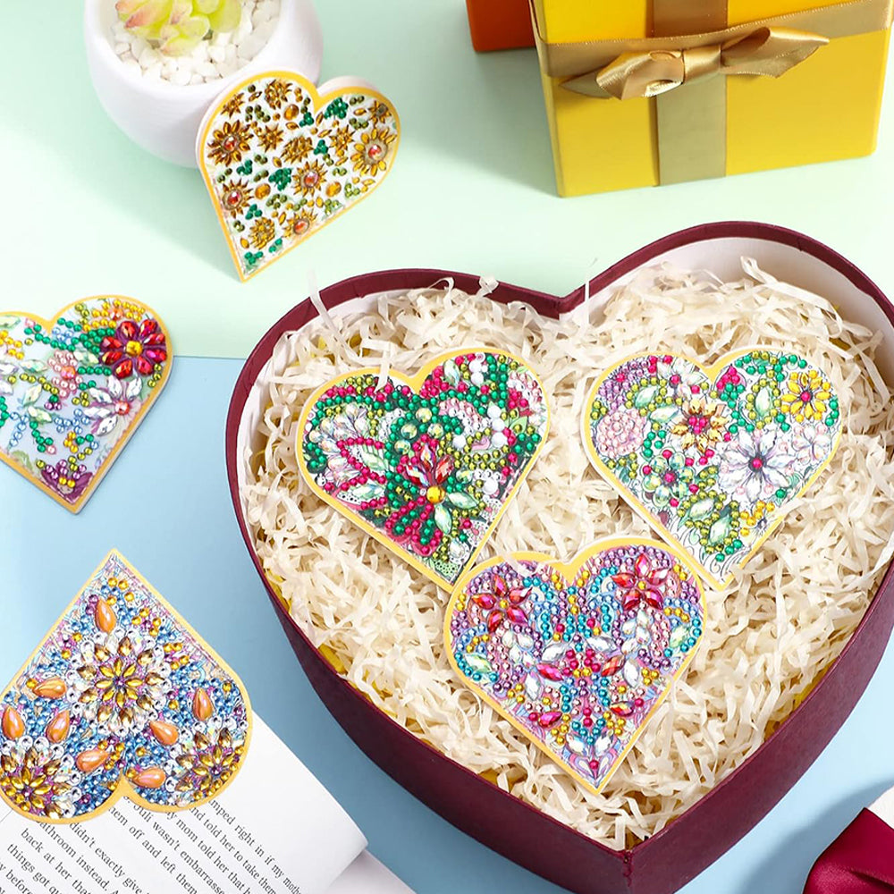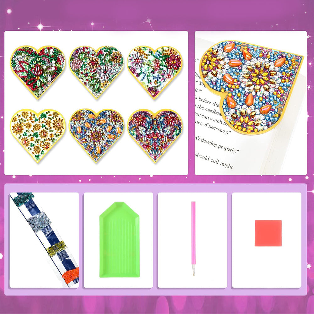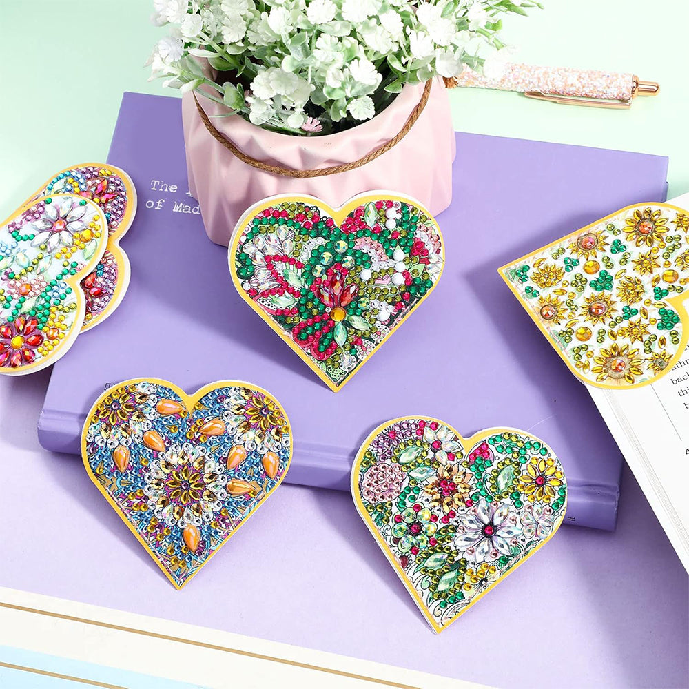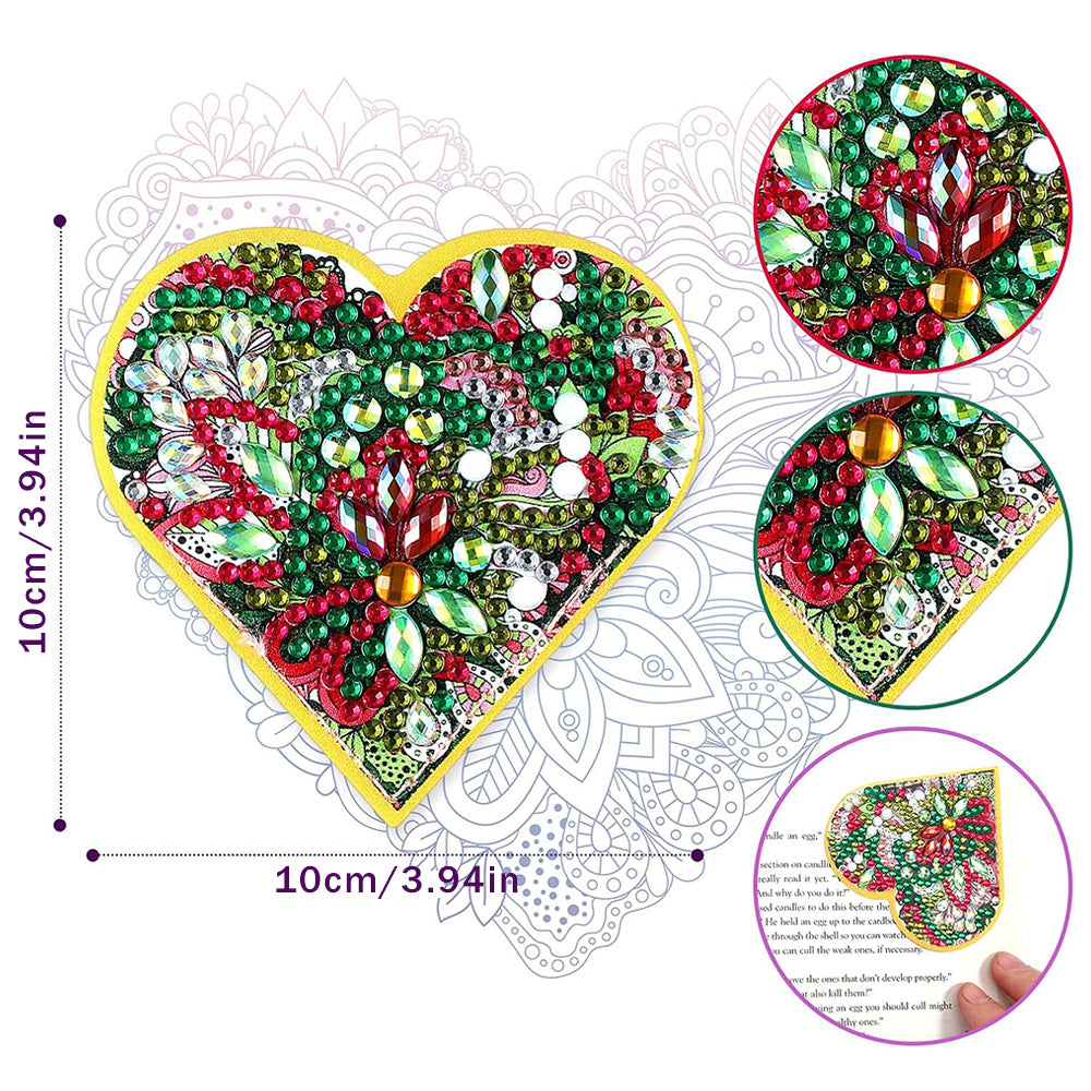 6St. Herz Geformt Chrysantheme Mandala PU Ecke Abdeckung Lesezeichen Set Diamond Painting