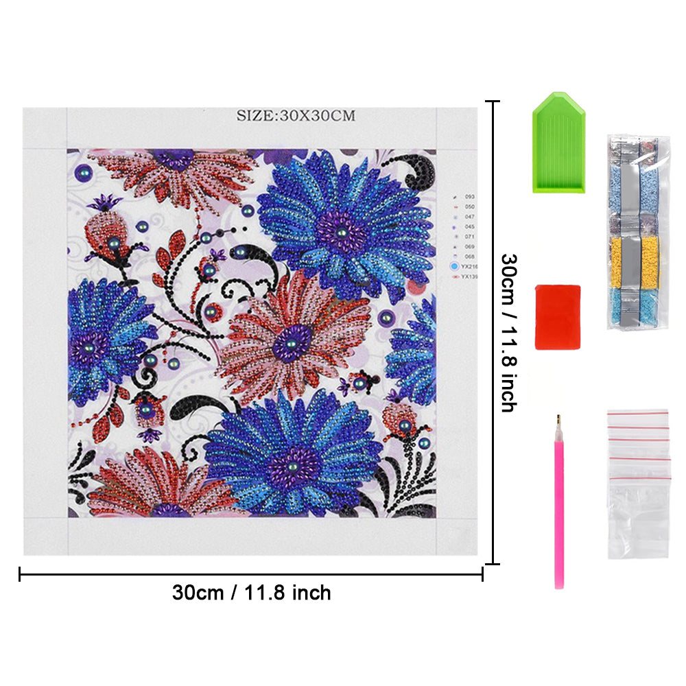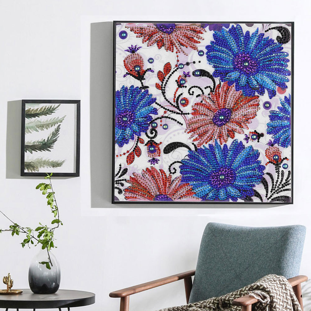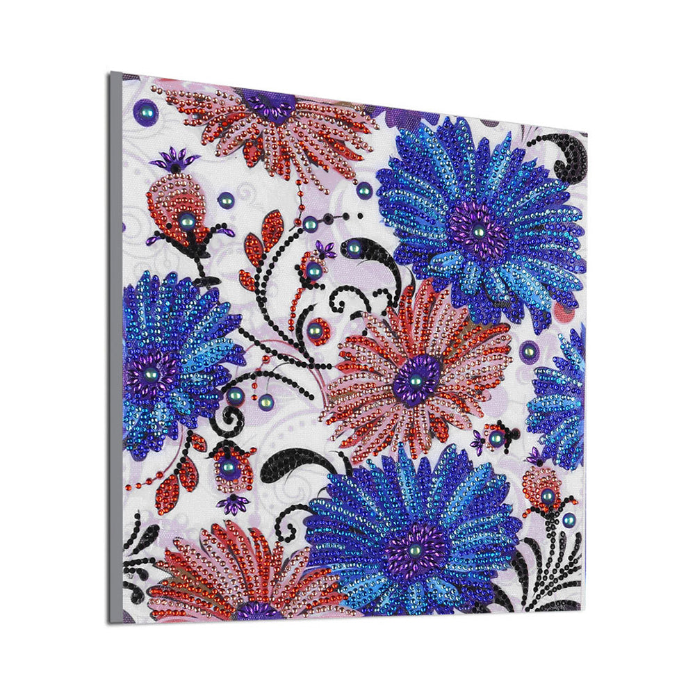 Blaue und Rote Blume Sonderform Diamond Painting